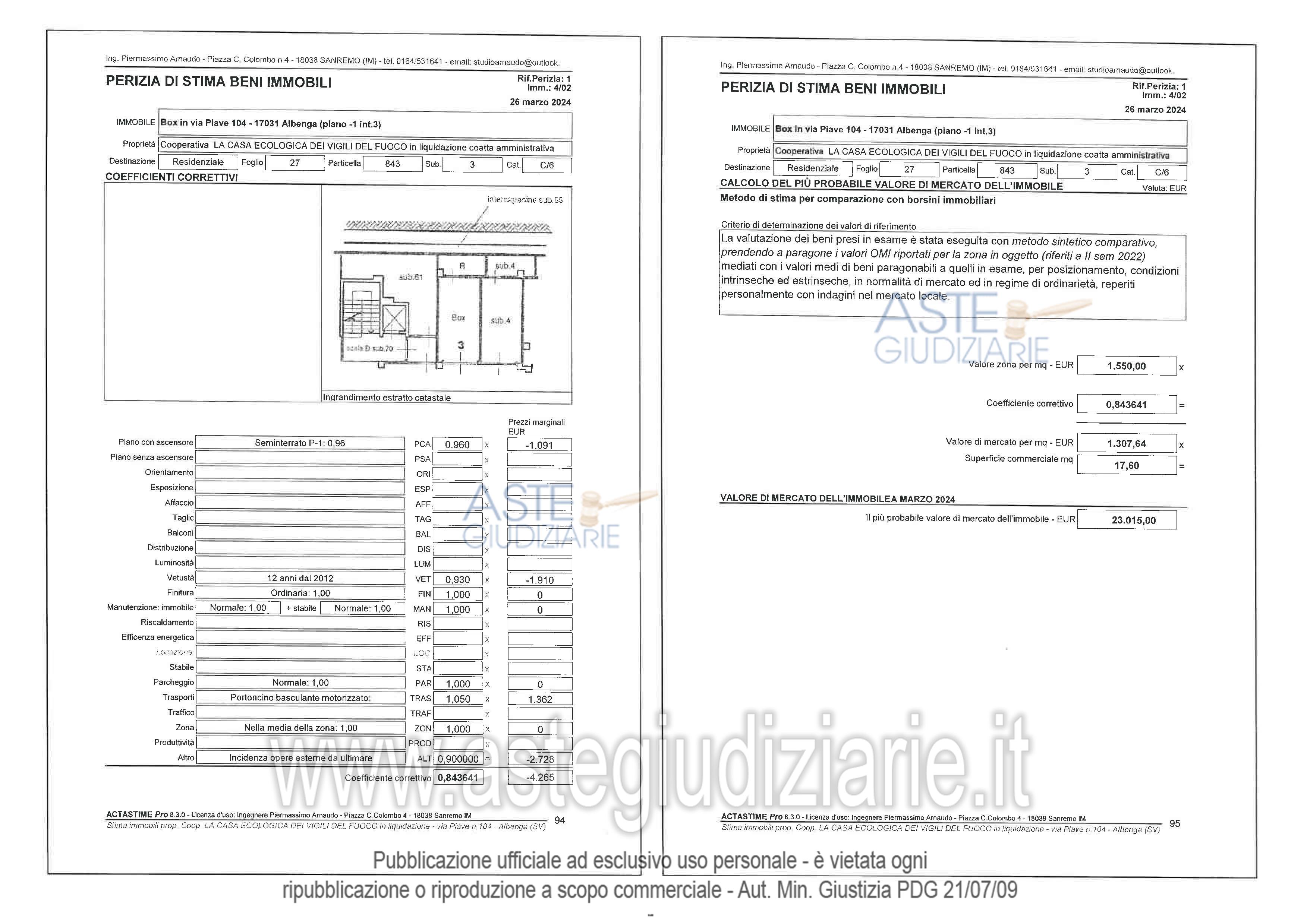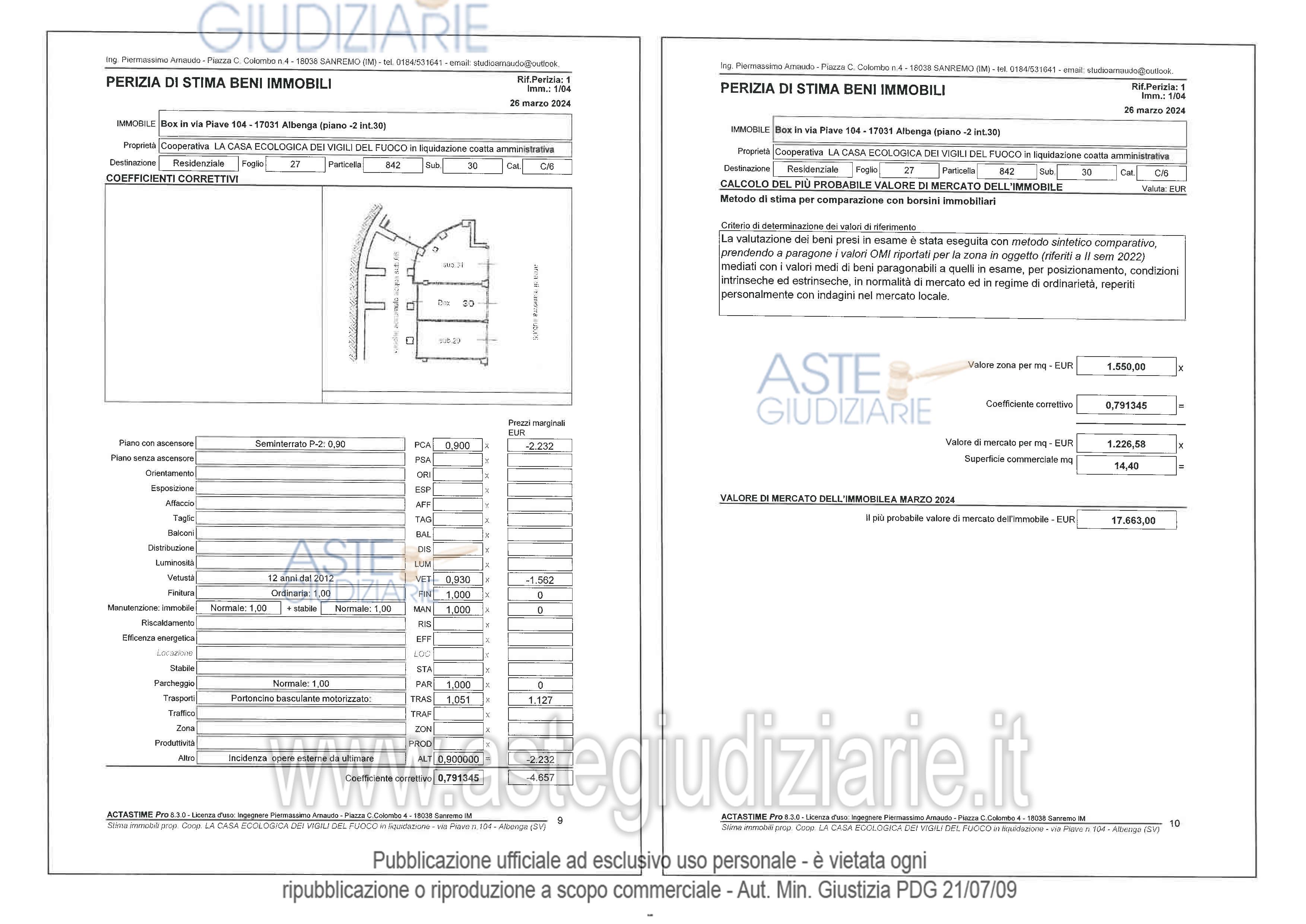 Vendita all'asta Senza incanto - LOTTO 4: BOX DISTINTO AL CATASTO AL F. 27 MAP. 843, SUB. 3 IL TUTTO MEGLIO INDICATO NELLA PERIZIA REDATTA DALL'ING. PIER MASSIMO ARNAUDO GIURATA IL 27/03/2024. PREZZO BASE D'ASTA € 13.000,00 (TREDICIMILA/00) OLTRE ONERI DI LEGGE - OFFERTA MINIMA EURO 9.800,00 (NOVEMILAOTTOCENTO/00). Prezzo base € 13.000,00 (offerta minima € 9.800,00). Data vendita 03/12/2025 ore 15:00. Professionista delegato alla vendita Not. Gianluca Eleuteri - Email "notaio@eleuteri.it"; Tel. 0117776600. Rif. Ente Ministero delle Imprese e del Made in Italy - Liquidazione coatta n. 58/2017