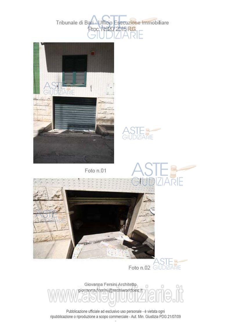 Vendita all'asta Senza incanto, con gara telematica asincrona - LOTTO 8: Piena proprietà del locale uso-garage ubicato in Altamura alla via alla via Pastrengo 14 (catastale 12), con annesso piccolo vano cantina, superficie catastale mq 41. Prezzo base € 18.186,19 (offerta minima € 13.640,00). Data inizio operazioni di vendita: 20/02/2026 ore 10:00. Giudice Dott. Marina Cavallo. Professionista delegato alla vendita Avv. Giovanni Chicco - Email "Giovannichicco55@gmail.com"; Tel. 0805213405. Custode Giudiziario Avv. Giovanni Chicco - Email "Giovannichicco55@gmail.com"; Tel. 0805213405. Rif. Tribunale di Bari - Esecuzione immobiliare post legge 80 n. 920/2015