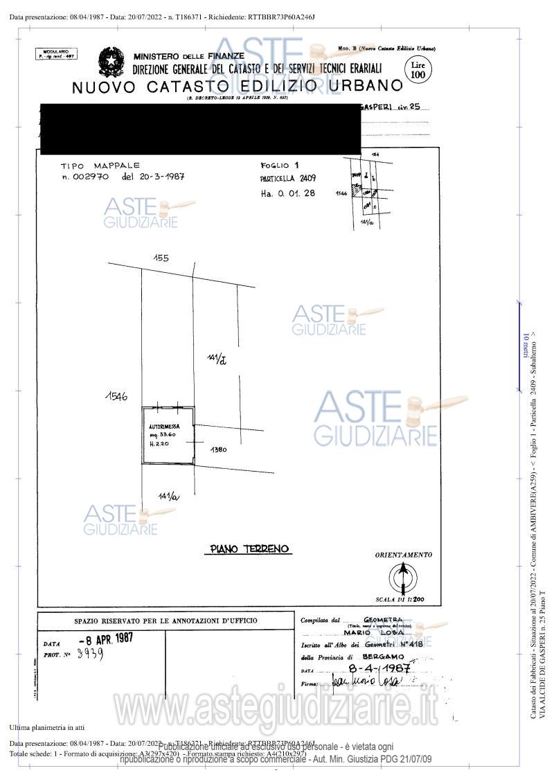 Vendita all'asta Senza incanto, con gara telematica asincrona - LOTTO 3: Autorimessa - Corpo H: autorimessa in uso deposito con accesso dall’area cortile in comune ai corpi descritti nel lotto 1 e lotto 2. Prezzo base € 10.518,75 (offerta minima € 7.889,06). Data inizio operazioni di vendita: 19/05/2026 ore 10:00. Giudice Dott. Luca Fuzio. Professionista delegato alla vendita Dott. Angelo Galizzi - Email "studiogalizzi@studiocgls.com"; Tel. 0350073211. Custode Giudiziario Dott. Angelo Galizzi - Email "studiogalizzi@studiocgls.com"; Tel. 0350073211. Rif. Tribunale di Bergamo - Esecuzione immobiliare post legge 80 n. 103/2022