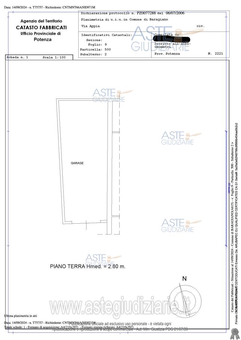 Vendita all'asta Senza incanto, con gara telematica asincrona - LOTTO 2: diritto proprietà per la quota di 1/1 di un box indipendente sito al piano terra in Via Appia s.n.c. del Comune di Baragiano (PZ) (cap 85050). Prezzo base € 5.250,00 (offerta minima € 3.937,50). Data inizio operazioni di vendita: 18/06/2026 ore 10:00. Professionista delegato alla vendita Avv. Francesco Missanelli - Email "francescomissanelli@gmail.com"; Tel. 0971443116. Custode Giudiziario Avv. Francesco Missanelli - Email "francescomissanelli@gmail.com"; Tel. 0971443116. Rif. Tribunale di Potenza - Esecuzione immobiliare post legge 80 n. 32/2021