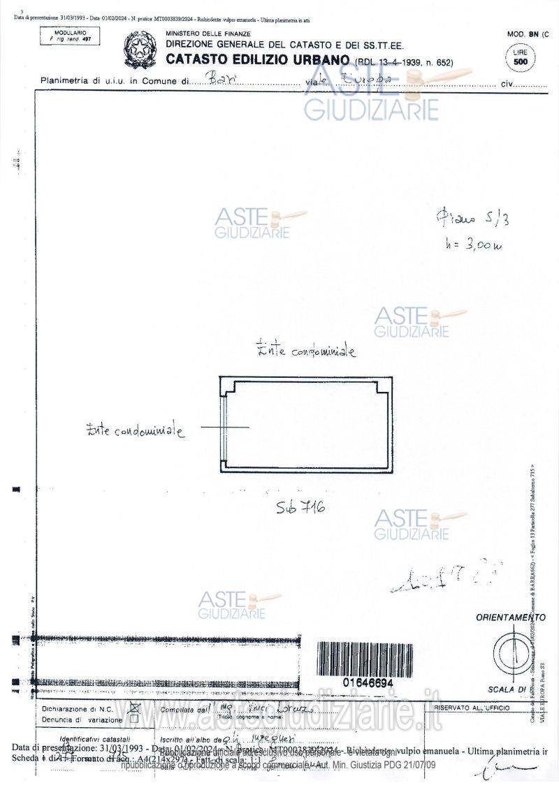 Vendita all'asta Senza incanto, con gara telematica asincrona - LOTTO 18: Propriété pleine et parfaite du garage situé au troisième sous-sol. Prezzo base € 3.268,87 (offerta minima € 1.500,00). Data inizio operazioni di vendita: 10/06/2026 ore 09:30. Giudice Dott. Assunta Napoliello. Custode Giudiziario Aste Giudiziarie Inlinea S.P.A. - Email "vendite@astegiudiziarie.it"; Tel. 0586 201480. Curatore Avv. Carlo De Pasquale. Rif. Tribunale di Bari - Liquidazione giudiziale(cci) n. 112/2023