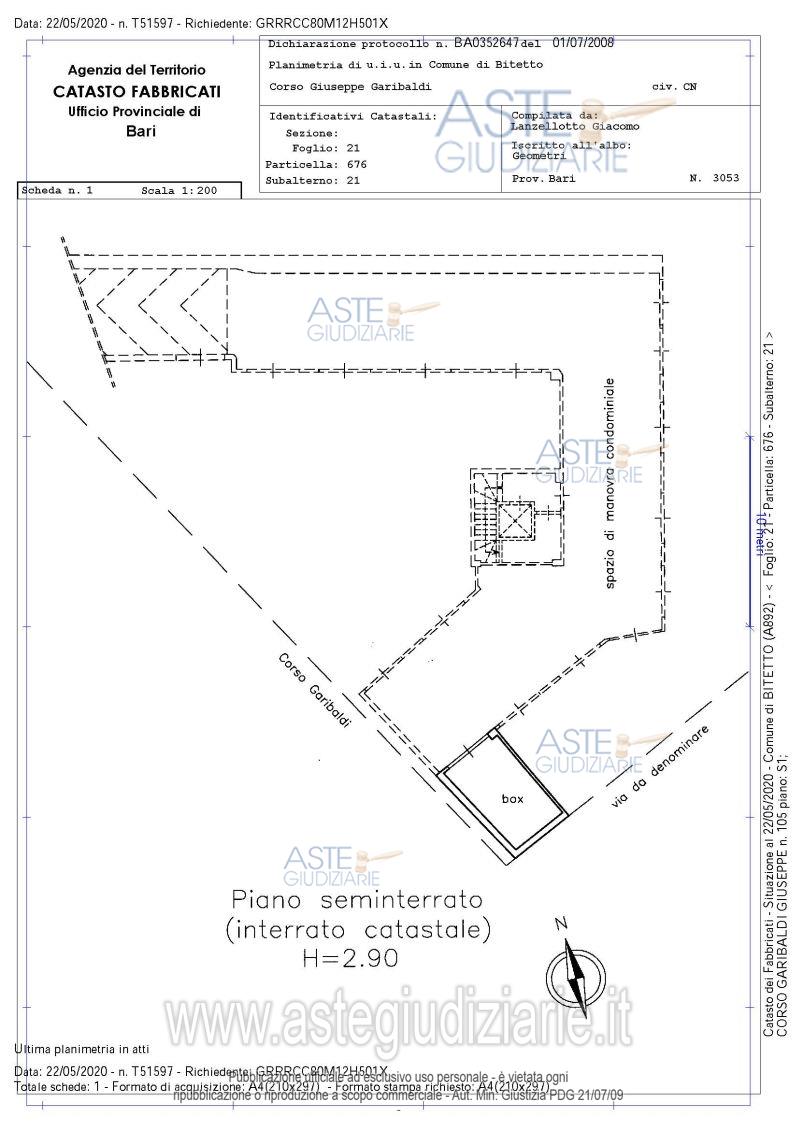 Garage o Posto auto Corso Garibaldi n. 105, 70020 Bitetto (BA)