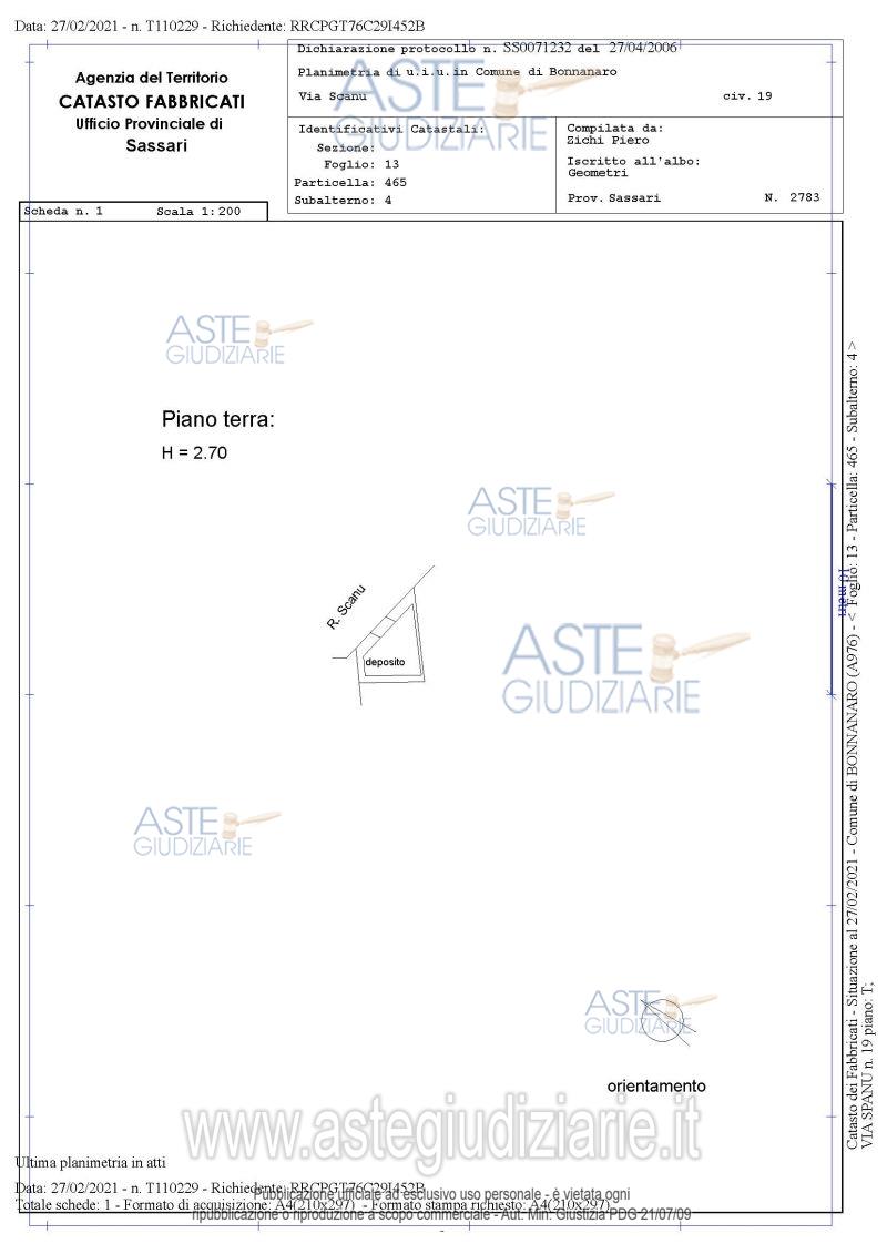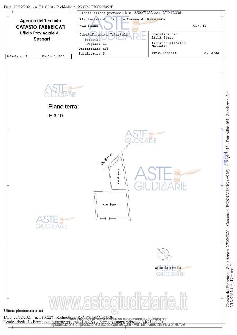 Vendita all'asta Senza incanto - LOTTO UNICO: BENE1:Negozio in Bonnanaro (SS), vicolo La Marmora, catasto fabbricati comune di Bonnannaro (SS), fg. 13, part. 465, sub 2, piano T, cat. C/1, mq. 44; BENE2:Garage in Bonnanaro (SS), Via Scanu, catasto fabbricati comune di Bonnannaro (SS), fg. 13, part. 465, sub 3, piano T, cat. C/6, cl. 2, mq. 35;BENE3:Magazzino in Bonnanaro (SS), Via Scanu, catasto fabbricati comune di Bonnannaro (SS), fg. 13, part. 465, sub 4, piano T, cat. C/2, mq. 6; L’immobile è posto in vendita per il diritto di proprietà (1/1). Prezzo base € 10.000,00 (offerta minima € 7.500,00). Data vendita 25/03/2026 ore 10:00. Giudice Manconi. Professionista delegato alla vendita Avv. Ludovica Stagi - Email "ludovica.stagi@hotmail.com"; Tel. +393450605726. Custode Giudiziario Istituto Vendite Giudiziarie Sassari - Email "visitaivgsassari@gmail.com"; Tel. 079260228. Rif. Tribunale di Sassari - Esecuzione immobiliare post legge 80 n. 65/2020