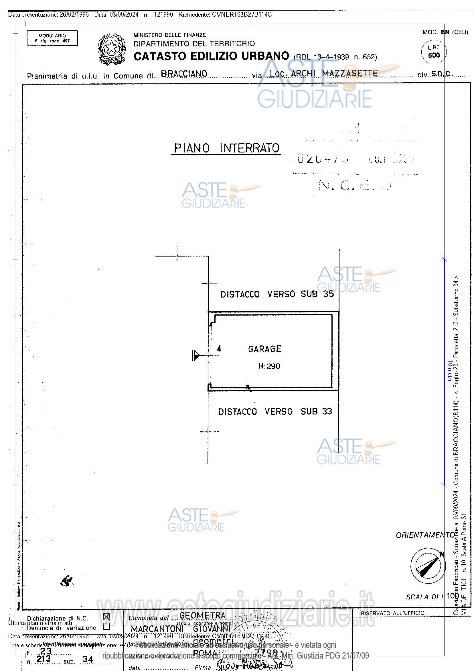 Vendita all'asta Senza incanto, con gara telematica asincrona - LOTTO 11: Garage on the basement floor of staircase A, identified with internal number 4. Prezzo base € 5.205,00 (offerta minima € 3.903,75). Data inizio operazioni di vendita: 13/01/2026 ore 09:30. Giudice Dott. Giorgio Jachia. Curatore Avv. Maria Teresa Persico. Rif. Tribunale di Roma - Fallimentare n. 58773/1996