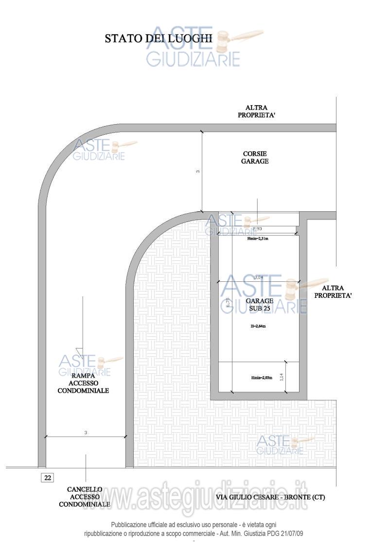 Vendita all'asta Senza incanto, con gara telematica asincrona - LOTTO 2: Garage di mq 20,50. Prezzo base € 9.500,00 (offerta minima € 7.125,00). Data inizio operazioni di vendita: 25/06/2026 ore 14:30. Giudice: Fabio Letterio Ciraolo.
