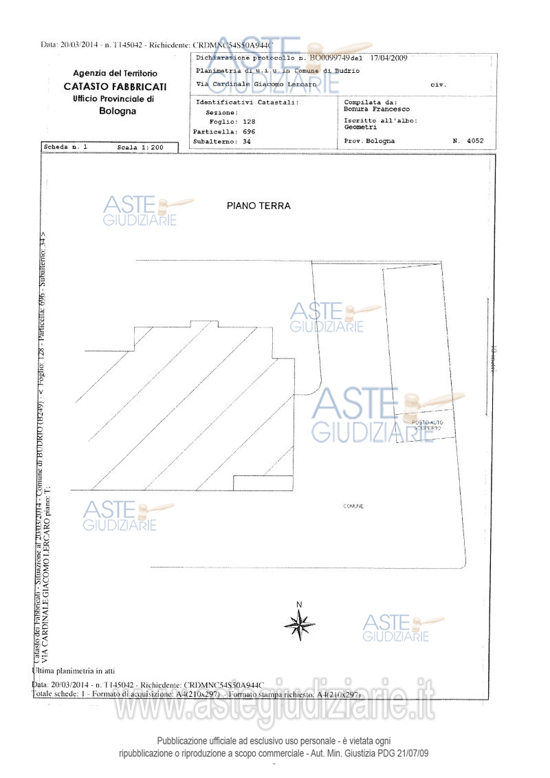 Vendita all'asta Senza incanto - LOTTO 5: Poso auto scoperto. Prezzo base € 1.411,00. Data vendita 09/09/2026 ore 16:00. Professionista delegato alla vendita: Not. Lorenzo Viapiana.