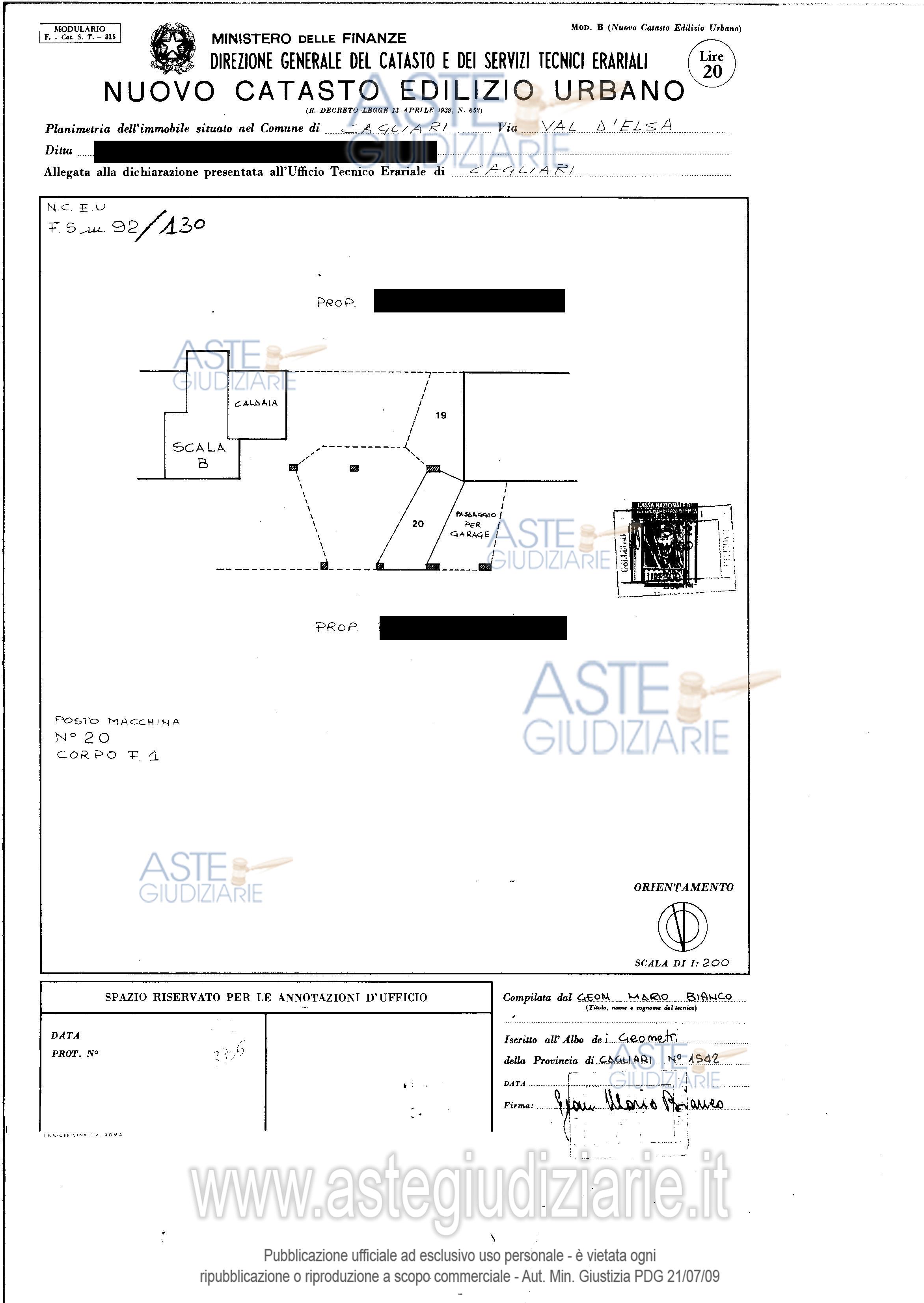 Vendita all'asta Competitiva - LOTTO 3: Lotto 3) quota pari al 100% della piena proprietà del posto auto coperto, int. 20, sito in Cagliari via Val d’Elsa n°56, piano terra, censito al Catasto Urbano alla Sezione A, Foglio 5, particella 1350, sub. 130, zona censuaria 1, cat. C/6, classe 3, superficie catastale 18 mq, rendita catastale €74,37. Il posto auto è conforme alla planimetria catastale. I C.T.U. hanno rilevato la presenza di difformità urbanistiche che potranno essere sanate in accertamento di conformità, come meglio indicato in perizia. Prezzo base € 7.400,00 (offerta minima € 7.400,00). Data vendita 27/01/2026 ore 15:00. Rif. Tribunale di Cagliari - Nuovo concordato preventivo n. 14/2020