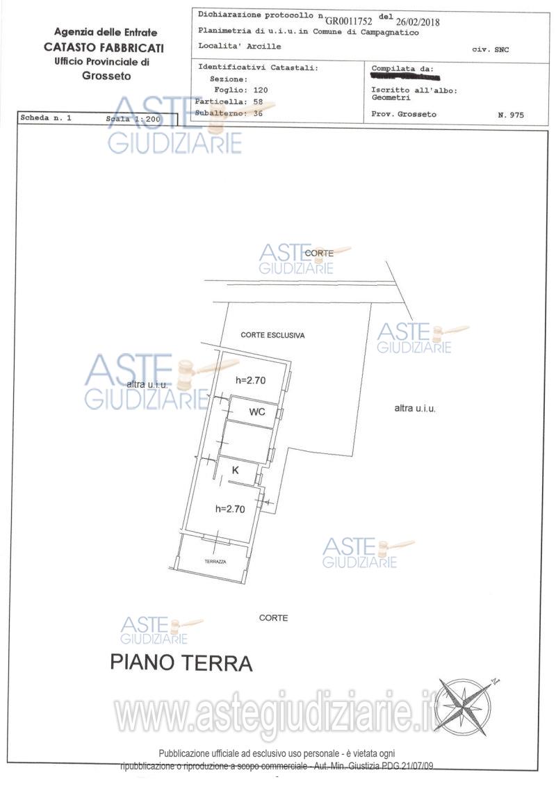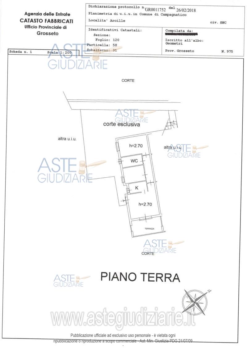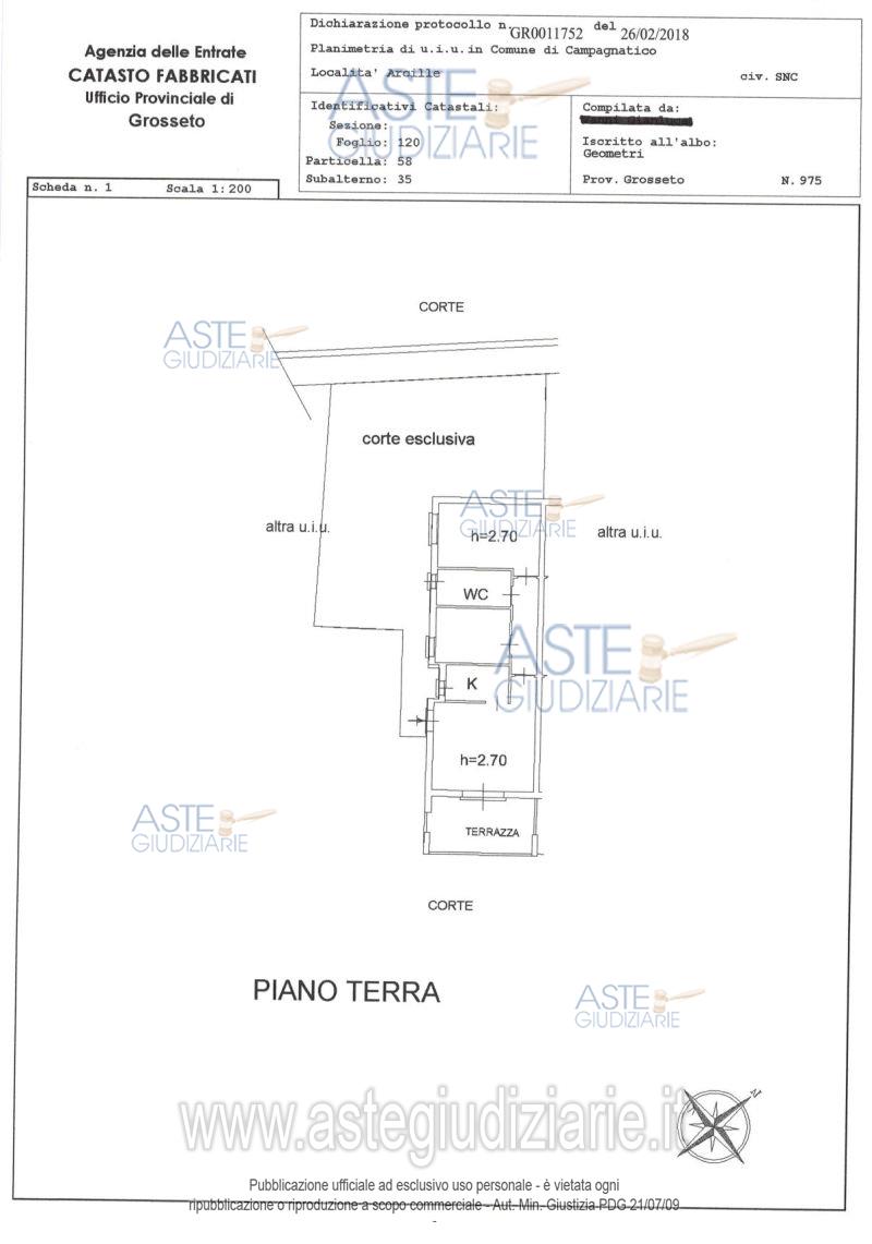 Vendita all'asta Senza incanto, con gara telematica sincrona mista - LOTTO UNICO: 1/1 di piena proprietà su compendio immobiliare posto nella frazione di Arcille Campagnatico (GR) composto da n° 16 unità abitative, n° 19 garages n° 4 magazzini e n° 3 aree urbane. Prezzo base € 564.995,00 (offerta minima € 423.747,00). Data vendita 13/01/2026 ore 09:00. Giudice Cristina Nicolo'. Professionista delegato alla vendita Avv. Giovanna Cillerai - Email "giovannacillerai@tiscali.it". Custode Giudiziario Lucia Ghelli - Email "ivggrosseto@astagiudiziaria.com"; Cell. 3880763049. Rif. Tribunale di Grosseto - Esecuzione immobiliare post legge 80 n. 73/2020