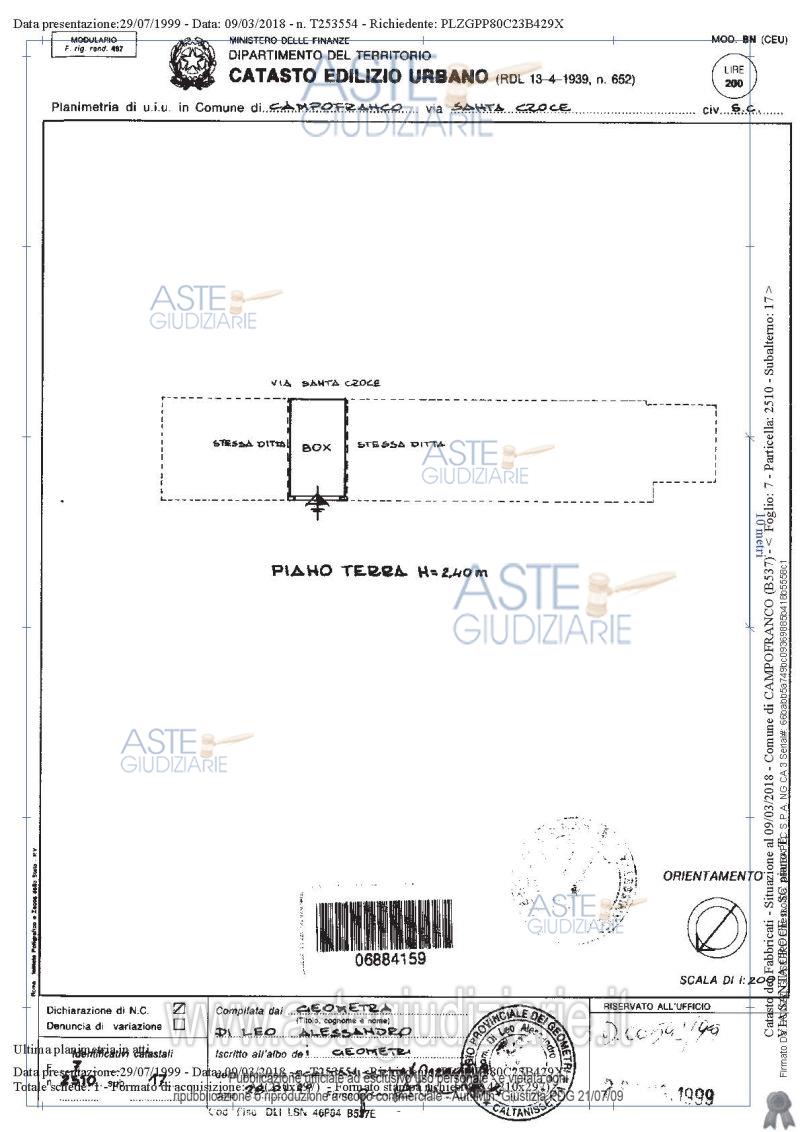 Vendita in attesa dell'emissione del nuovo bando d'asta. LOTTO 8: LOTTO H - Garage sito in Campofranco in Via Santa Croce n.174 D posto al piano terra, ubicato in una zona di espansione vicina al centro storico, con ingresso da un cortile condominiale in adiacenza di un fabbricato a più elevazioni, composto da un unico vano, pavimentato, rifinito in gesso scagliola e idropittura con apertura a basculante. Ultimo prezzo base € 6.937,50 (offerta minima € 5.203,00). Giudice Ester Rita Difrancesco. Professionista delegato alla vendita Dott. Carolina Cucurullo. Custode Giudiziario Dott. Carolina Cucurullo - Email "carolina.cucurullo@gmail.com"; Cell. 340-0814632. Rif. Tribunale di Caltanissetta - Esecuzione immobiliare post legge 80 n. 36/2016
