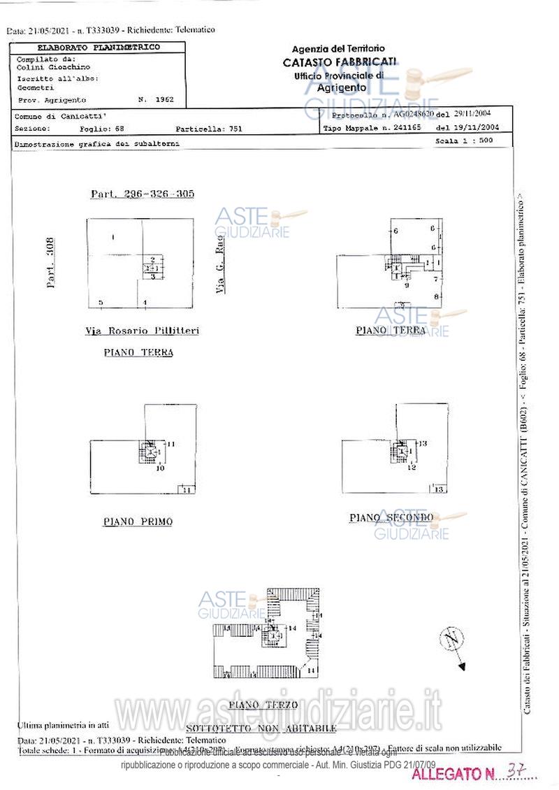 Vendita all'asta Senza incanto, con gara telematica sincrona mista - LOTTO 5: Piena proprietà per la quota di 1000/1000 di autorimessa ubicata a Canicattì (Agrigento) via Rosario Pillitteri. Composto da un unico vano con una ripida rampa di accesso dalla via Pillitteri. L’unità immobiliare si trova al piano terra ed è vincolata a parcheggio.Identificato al catasto fabbricati al foglio 68 mappale 751 subalterno 4, categoria C/6, classe 1. Prezzo base € 9.624,75 (offerta minima € 7.218,59). Data vendita 21/04/2026 ore 16:30. Professionista delegato alla vendita Avv. Carmen Augello - Email "carmen.augello@gmail.com"; Cell. 3385852370; Tel. 0922854658. Custode Giudiziario Loredana Danile - Email "avvocatoldanile@gmail.com"; Cell. 3314036381; Tel. 092222117. Rif. Tribunale di Agrigento - Esecuzione immobiliare post legge 80 n. 18/2021