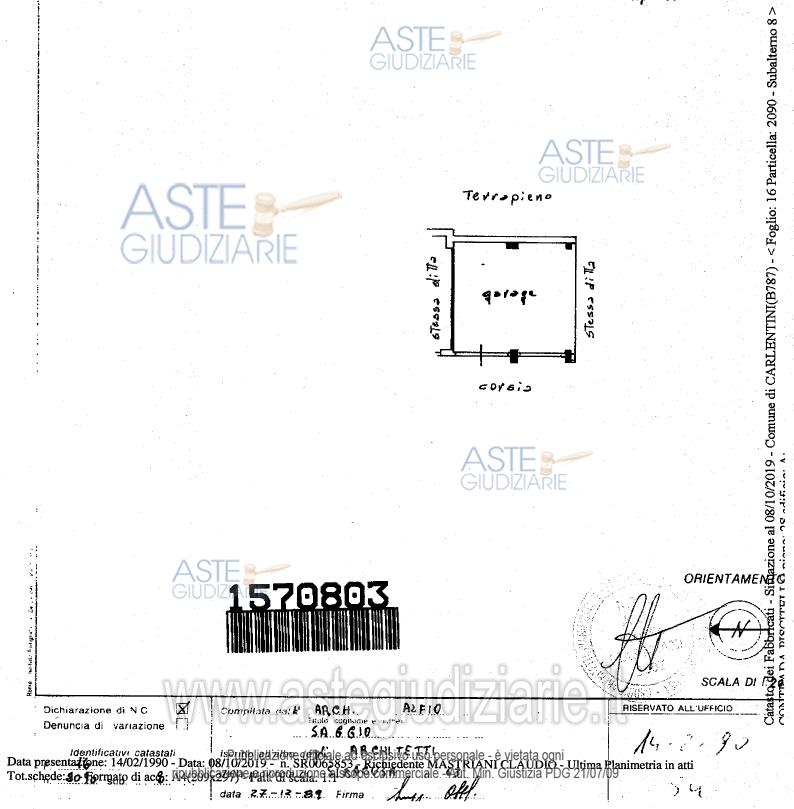 Vendita all'asta Senza incanto, con gara telematica sincrona mista - LOTTO 8:  Piena proprietà di garage sito in Carlentini (SR), C.da Piscitello, Via del Mare, 98 - Pal. A, piano 2S. Al N.C.E.U. al Fg. 16, p.lla 2090, sub. 8, cat. C/6. Prezzo base € 7.171,88 (offerta minima € 5.378,91). Data vendita 18/12/2025 ore 10:00. Giudice Maria Cristina Di Stazio. Professionista delegato alla vendita Avv. Gabriele Galota - Email "galota.gabriele@gmail.com"; Tel. 09311562510. Custode Giudiziario  Avv. Gabriele Galota - Email "galota.gabriele@gmail.com"; Tel. 09311562510.  Rif. Tribunale di Siracusa - Esecuzione immobiliare post legge 80 n. 178/2006