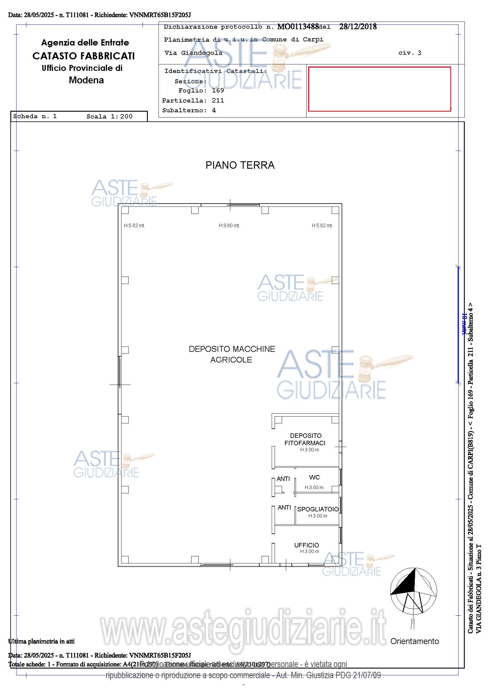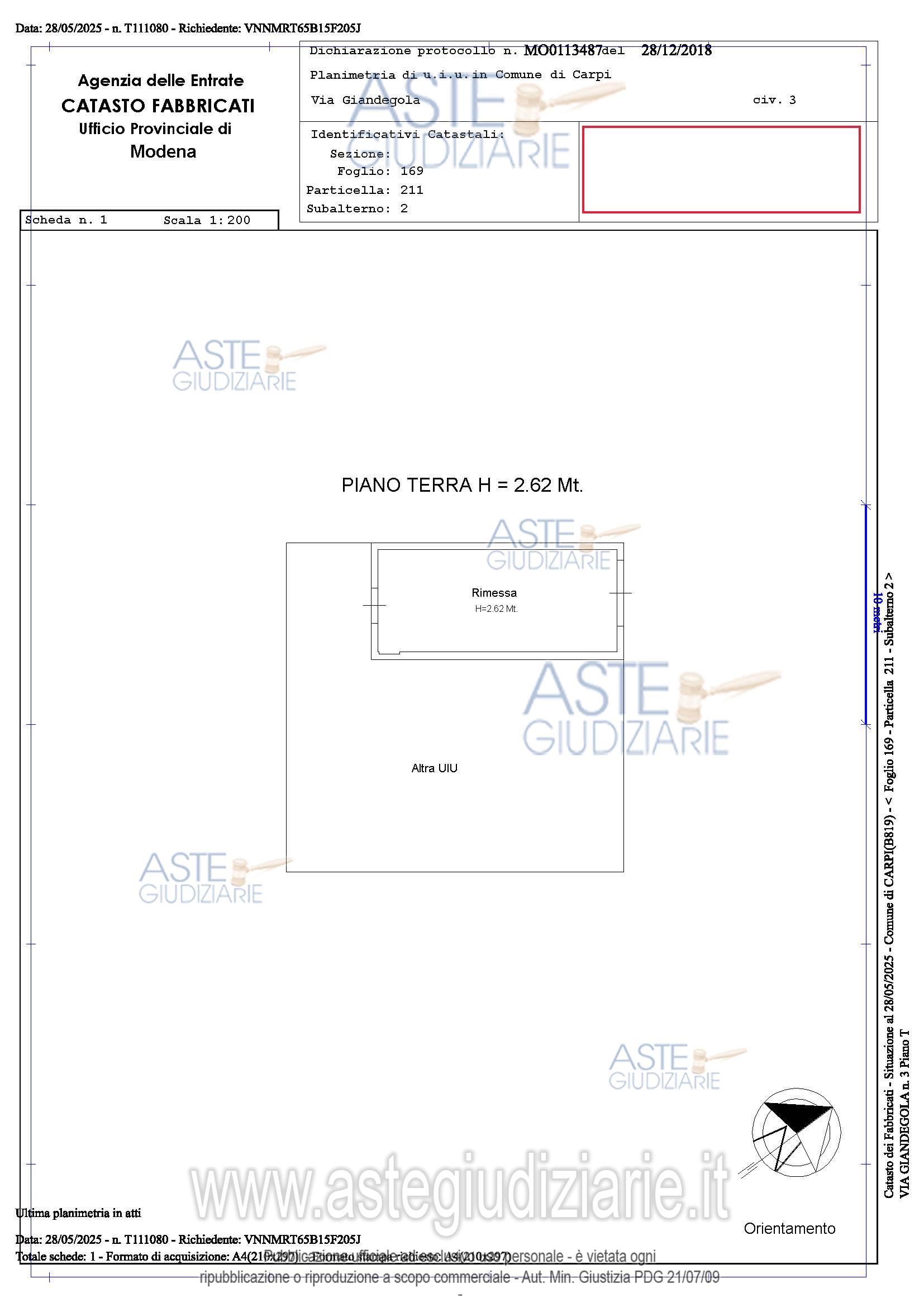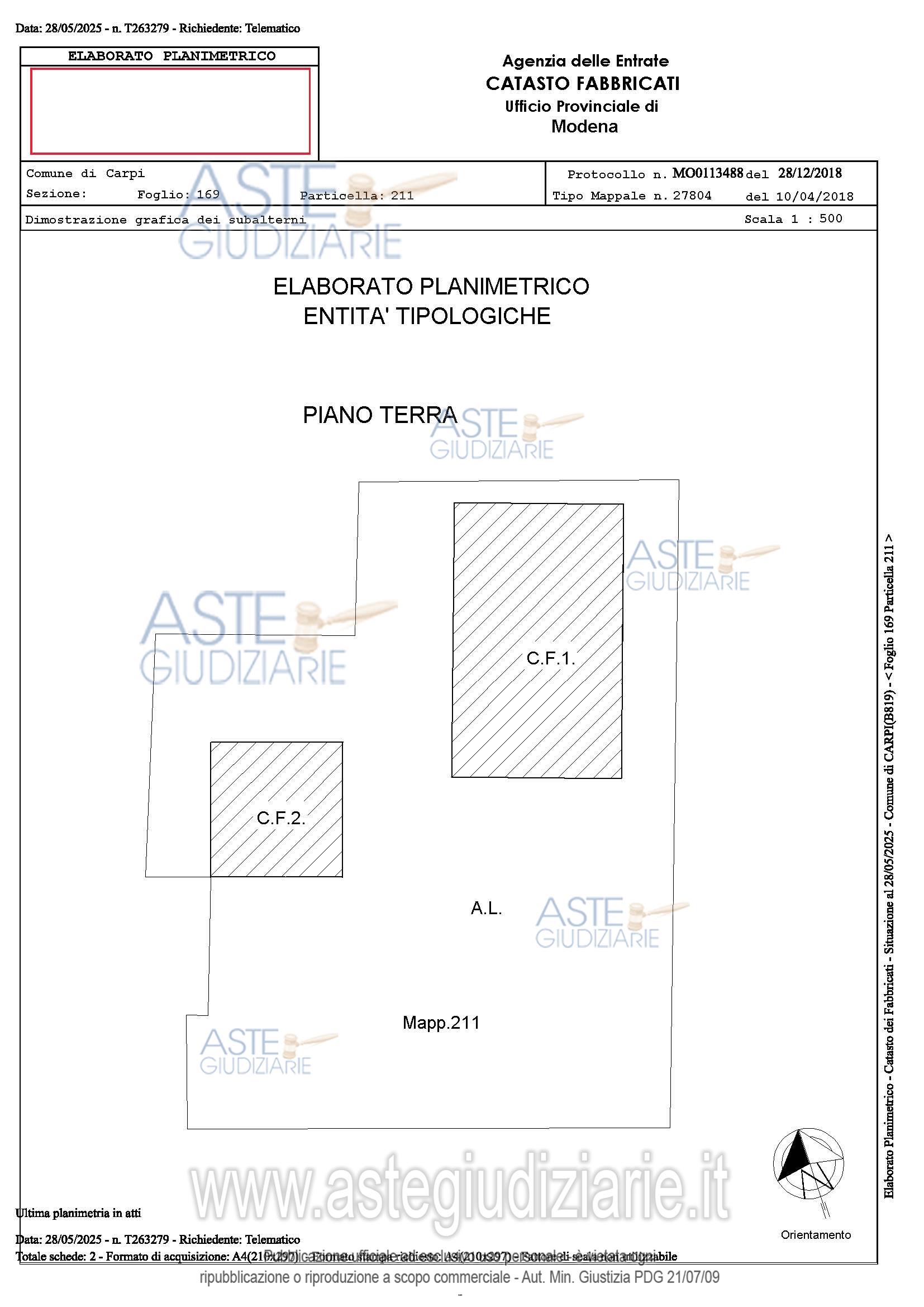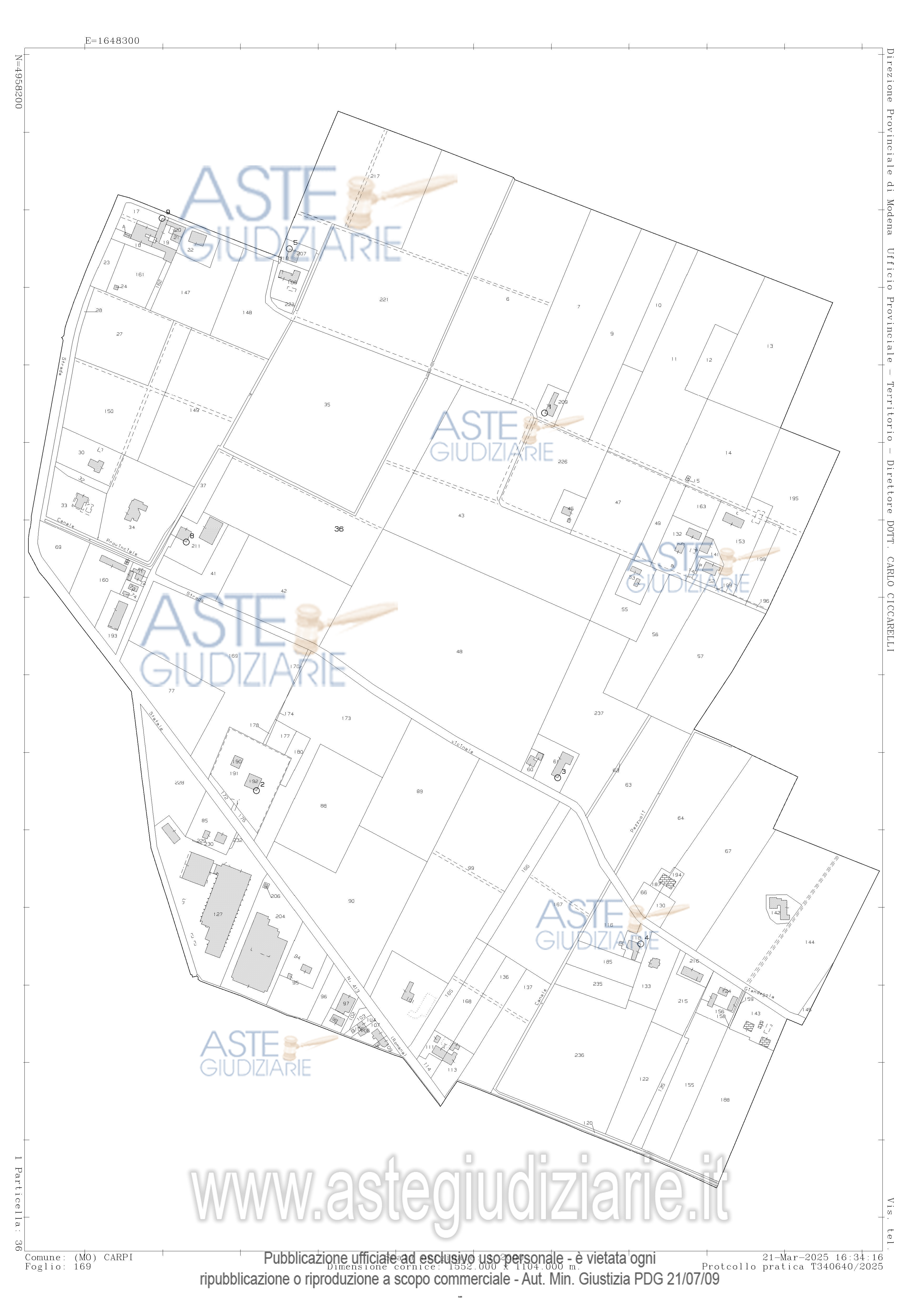 Vendita all'asta Senza incanto, con gara telematica asincrona - LOTTO 1: Quota 1/1 di piena proprietà di compendio immobiliare idealmente suddiviso in due comparti tra loro omogenei, posto in Comune di Carpi (MO), Via Giandegola, n. 3, così composto:Comparto A costituito da n. 5 particelle di terreno agricolo a formare un unico corpo;Comparto B costituito da un fabbricato rurale ad uso abitativo costituito da un appartamento su tre livelli e da un garage adibito a residenza e un fabbricato adibito a deposito. Prezzo base € 424.000,00 (offerta minima € 318.000,00). Data inizio operazioni di vendita: 11/11/2025 ore 15:30. Professionista delegato alla vendita Avv. Chiara Bernardi - Email "chiara@giustiassociati.it"; Tel. 059222115. Custode Giudiziario Alex Manelli - Email "visiteimmobili@ivgmodena.it"; Tel. 059847301. Rif. Tribunale di Modena - Esecuzione immobiliare post legge 80 n. 36/2023