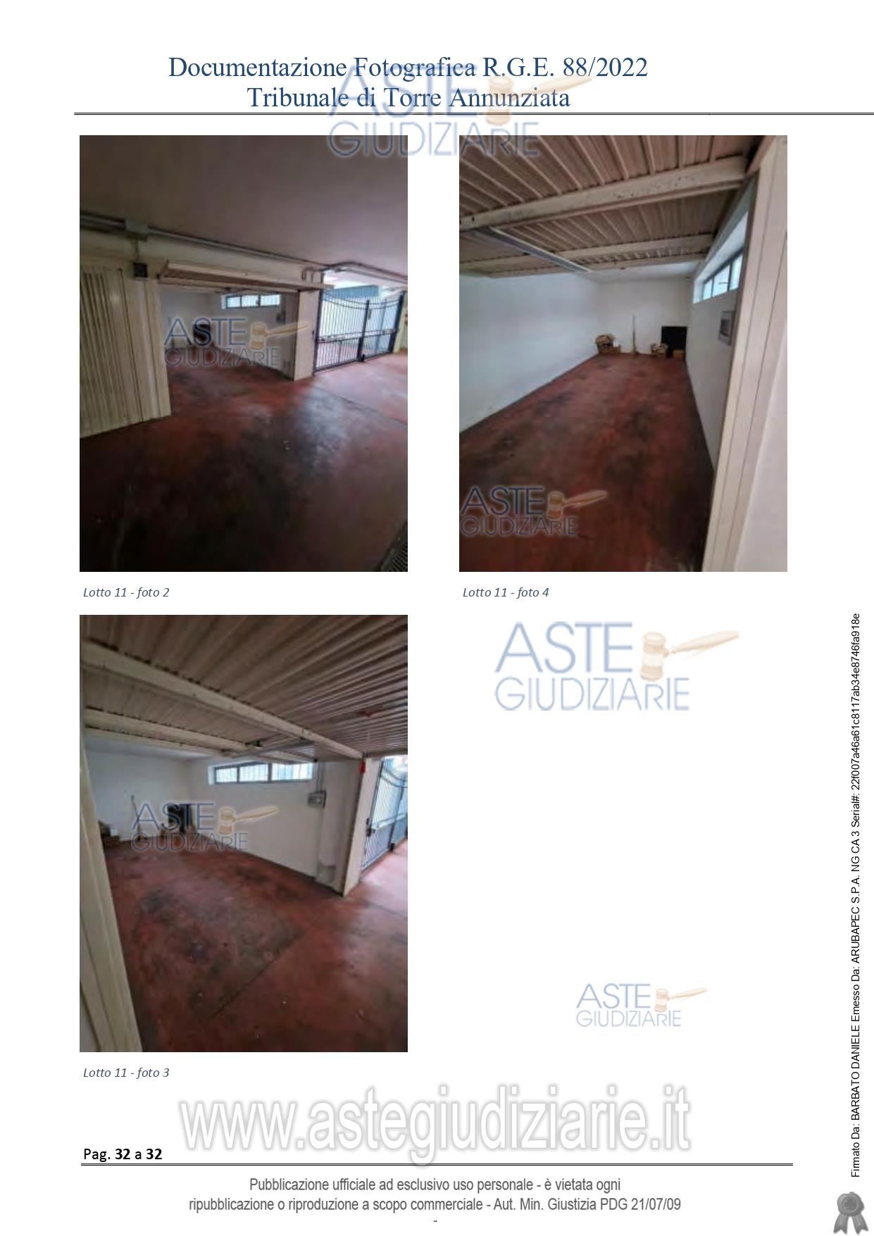 Vendita all'asta Senza incanto, con gara telematica asincrona - LOTTO 11: Piena ed intera proprietà di un Box/garage ubicato in Castellammare di Stabia (NA), Via Fratte n° 19 piano II sottostrada. Prezzo base € 17.800,00 (offerta minima € 13.350,00). Data inizio operazioni di vendita: 31/03/2026 ore 14:30. Professionista delegato alla vendita Avv. Stefania Scotto Di Ciccariello - Email "stefania.scotto@alice.it"; Cell. 360414742; Tel. 360414742. Custode Giudiziario Avv. Stefania Scotto Di Ciccariello - Email "stefania.scotto@alice.it"; Cell. 360414742; Tel. 360414742. Rif. Tribunale di Torre Annunziata - Esecuzione immobiliare post legge 80 n. 88/2022