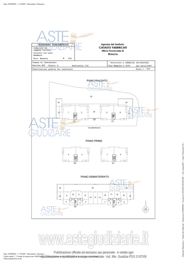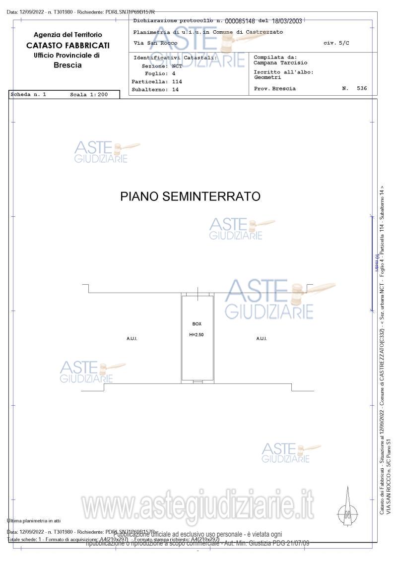 Vendita all'asta Senza incanto, con gara telematica asincrona - LOTTO 10: Piena proprietà. Trattasi di autorimessa posta a piano seminterrato, il tutto censito al Catasto Fabbricati - Sez. NCT - Fg. 4 mapp. 114 sub 14 P. S1, cat. C6 - mq. 29 con le proporzionali quote delle parti comuni ai sensi di legge. Prezzo base € 9.074,00 (offerta minima € 6.805,50). Data inizio operazioni di vendita: 28/01/2026 ore 10:30. Giudice Dellesecuzione Giudice. Professionista delegato alla vendita Dott. Giuseppe Crapanzano - Email "crapanzano@doncra.it". Custode Giudiziario Dott. Giuseppe Crapanzano - Email "crapanzano@doncra.it". Rif. Tribunale di Brescia - Esecuzione immobiliare post legge 80 n. 164/2022