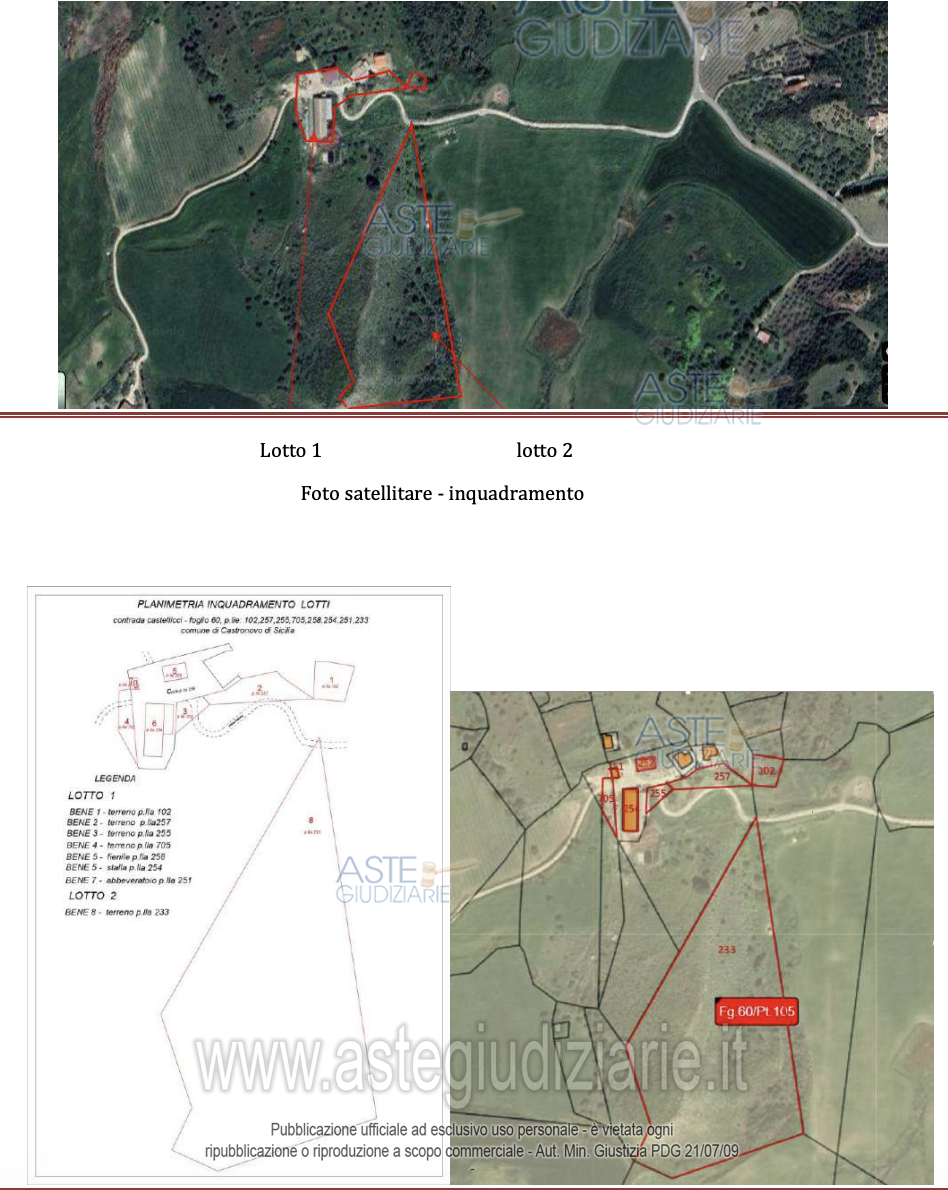Vendita all'asta Senza incanto, con gara telematica sincrona - LOTTO 1: Il LOTTO 1 comprende n. 6 beni consistenti in quattro fondi rustici e due fabbricati rurali tutti siti in Castronovo di Sicilia nella c.da Castellucci e meglio descritti ed individuati nella perizia di stima a firma dell'Arch. Maria Simonetta Militello cui interamente si rimanda. Prezzo base € 74.553,73 (offerta minima € 55.915,00). Data vendita 09/04/2026 ore 16:00. Professionista delegato alla vendita Avv. Giacomo Raneri - Email "giacomoraneri70@gmail.com"; Cell. 3389904862; Tel. 3389904862. Custode Giudiziario Avv. Giacomo Raneri - Email "giacomoraneri70@gmail.com"; Cell. 3389904862; Tel. 3389904862. Rif. Tribunale di Termini Imerese - Espropriazione immobiliare (cartabia) n. 61/2025