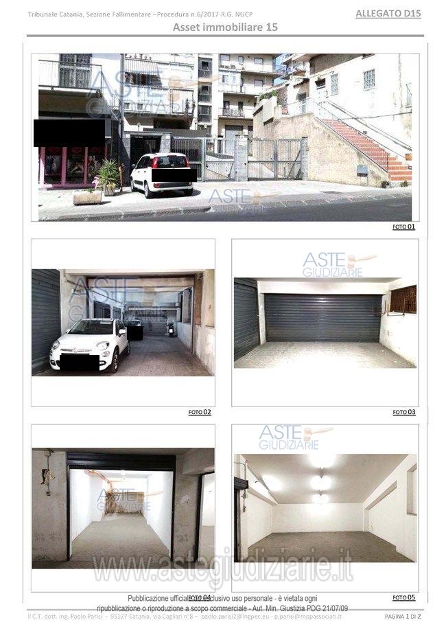 Vendita all'asta Senza incanto, con gara telematica asincrona - LOTTO 1501: Asset 15 "Garage viale della Regione". Garage posizionato al piano terreno, con ingresso dal cancello al civico 48. Prezzo base € 19.908,00 (offerta minima € 14.931,00). Data inizio operazioni di vendita: 21/05/2026 ore 09:00. Giudice Dott. Alessandra Bellia. Custode Giudiziario Avv. Noemi Barbagallo - Email "noemibarbagallo@tiscali.it". Rif. Tribunale di Catania - Nuovo concordato preventivo n. 6/2017