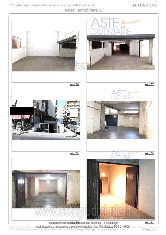 Vendita all'asta Senza incanto, con gara telematica asincrona - LOTTO 1503: Asset 15 «Garage viale della Regione». Garage al piano primo sottostrada, facente parte di complesso condominiale con accesso dallo scivolo al civico 20. Prezzo base € 23.951,00 (offerta minima € 17.964,00). Data inizio operazioni di vendita: 21/05/2026 ore 09:00. Giudice Dott. Alessandra Bellia. Custode Giudiziario Avv. Noemi Barbagallo - Email "noemibarbagallo@tiscali.it". Rif. Tribunale di Catania - Nuovo concordato preventivo n. 6/2017