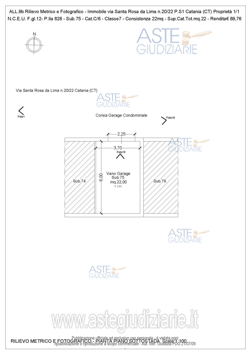 Vendita all'asta Senza incanto, con gara telematica sincrona - LOTTO 2: Proprietà Superficiaria su garage posto al piano primo sotto strada composto di un unico vano con altezza utile pari a circa mt. 2,50, il cui accesso carraio avviene dal cancello carrabile condominiale posto sulla via Santa Rosa da Lima al numero civico 20-22. Prezzo base € 12.161,60 (offerta minima € 9.121,20). Data vendita 27/01/2026 ore 11:00. Giudice Dott. Sebastiano Cassaniti. Custode Giudiziario Avv. Alberto Vella - Email "albertovella@gmail.com"; Tel. 095381606. Curatore Avv. Alberto Vella. Rif. Tribunale di Catania - Liquidazione giudiziale(cci) n. 4/2024
