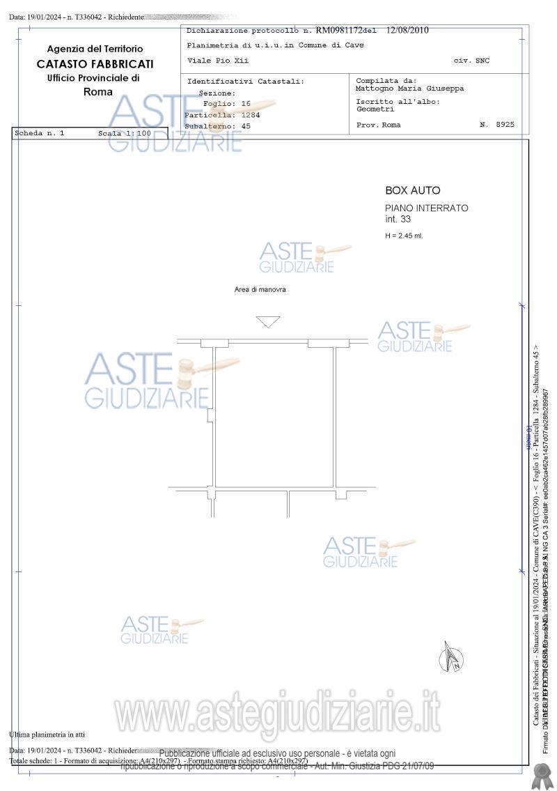 Vendita all'asta Senza incanto, con gara telematica asincrona - LOTTO 4: Immobile Uso Box Auto al piano S1 distinto con sub 45 (interno 33); . Prezzo base € 12.000,00 (offerta minima € 9.000,00). Data inizio operazioni di vendita: 09/12/2025 ore 14:00. Professionista delegato alla vendita Avv. Tonino Bernardini - Email "bernardini@bernardiniecoccia.it"; Cell. 3478464384. Custode Giudiziario Ivg Di Roma Srl - Email "pvp@visiteivgroma.it"; Tel. 0689569801. Rif. Tribunale di Tivoli - Esecuzione immobiliare post legge 80 n. 381/2023