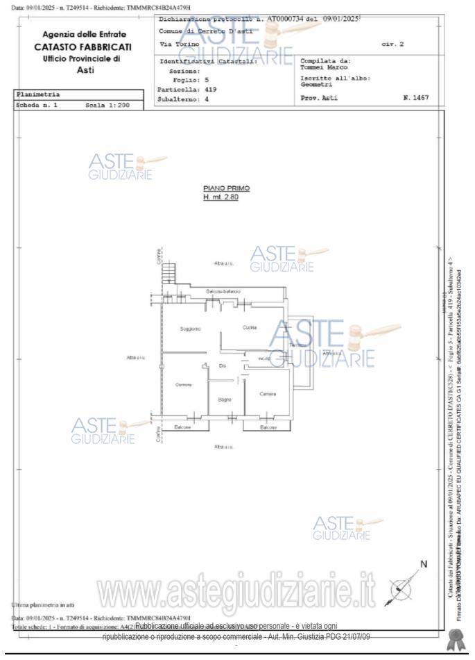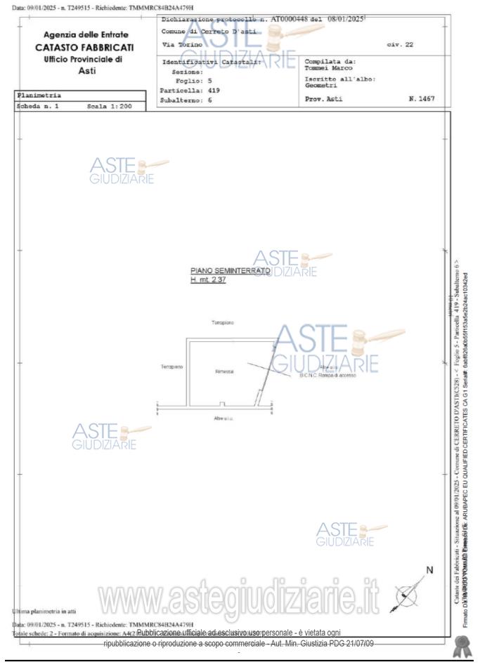Vendita all'asta Senza incanto, con gara telematica asincrona - LOTTO UNICO: Compendio immobiliare composto da due unità immobiliari: appartamento al primo piano e autorimessa al piano seminterrato. Prezzo base € 30.000,00 (offerta minima € 22.500,00). Data inizio operazioni di vendita: 18/02/2026 ore 16:00. Giudice Gian Andrea Morbelli. Professionista delegato alla vendita Avv. Donatella Fassio - Email "donatella.fassio@infinito.it". Custode Giudiziario Ifir Piemonte Ivg Srl - Email "richiestevisite.asti@ivgpiemonte.it". Rif. Tribunale di Asti - Esecuzione immobiliare post legge 80 n. 206/2022