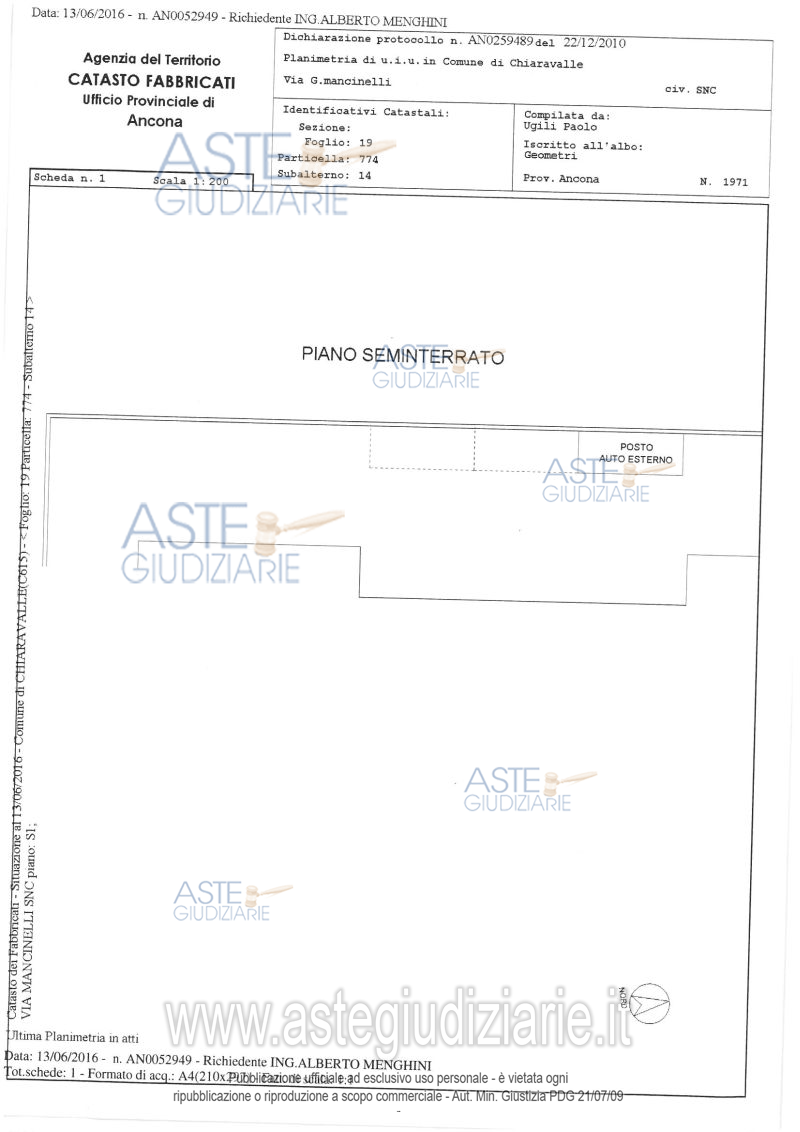 Vendita in attesa dell'emissione del nuovo bando d'asta. LOTTO 9: Diritto di piena e perfetta proprietà sul posto auto all’aperto. Ultimo prezzo base € 2.152,00 (offerta minima € 1.614,00). Giudice Giuliana Filippello. Curatore Andrea Bartolini. Rif. Tribunale di Ancona - Fallimentare (nuovo rito) n. 54/2016