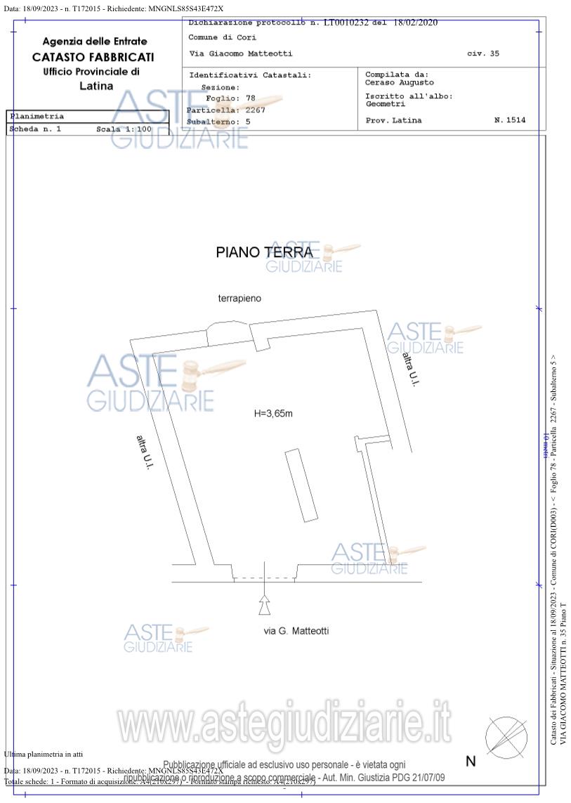 Vendita all'asta Senza incanto, con gara telematica asincrona - LOTTO 2: Locale magazzino e/o deposito ubicato a Cori (LT) - Via Giacomo Matteotti 35, piano terra. Prezzo base € 15.762,00 (offerta minima € 11.821,00). Data inizio operazioni di vendita: 09/06/2026 ore 12:00. Professionista delegato alla vendita Dott. Daniele Turco Liveri - Email "daniele@studioturcoliveri.it"; Cell. 3398786024; Tel. 0687729029. Custode Giudiziario Dott. Daniele Turco Liveri - Email "daniele@studioturcoliveri.it"; Cell. 3398786024; Tel. 0687729029. Rif. Tribunale di Latina - Esecuzione immobiliare post legge 80 n. 251/2022