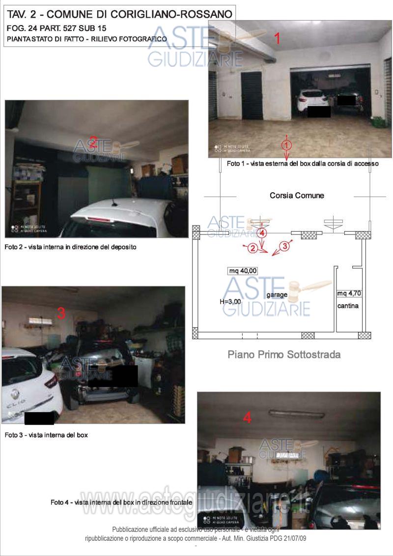 Vendita all'asta Senza incanto, con gara telematica sincrona - LOTTO 2: Box singolo della superficie commerciale di mq 50,00. Il condominio di cui il box fa parte è sito in Corigliano-Rossano (A.U. Rossano Scalo), via Conca D’Oro. Prezzo base € 25.740,00 (offerta minima € 19.305,00). Data vendita 18/03/2026 ore 15:00. Giudice Giuliana Gaudiano. Professionista delegato alla vendita Avv. Annamaria Macrì - Email "avv.annamariamacri@virgilio.it". Custode Giudiziario Avv. Annamaria Macrì - Email "avv.annamariamacri@virgilio.it"; Tel. 3396897665. Rif. Tribunale di Castrovillari - Espropriazione immobiliare (cartabia) n. 35/2025