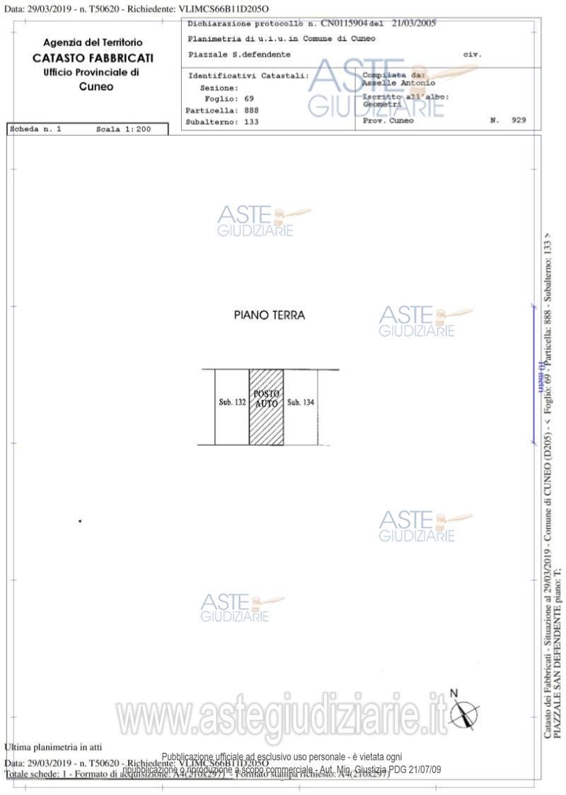 Vendita all'asta Senza incanto - LOTTO 44: Piena proprietà di n. UN posto auto sito nel comune di Cuneo, Fraz. Confreria Piazzale San Defendente – “Residenza Girasole”, segnato a terra, posizionato nel cortile interno dello stabile al piano della soletta dell’autorimessa interrata, con pavimento finito in autobloccanti. Prezzo base € 3.650,00 (offerta minima € 3.650,00). Data vendita 14/04/2026 ore 10:00. Curatore Dott. Giovanni Imberti - Tel. 0173 759301. Rif. Tribunale di Cuneo - Nuovo concordato preventivo n. 11/2018