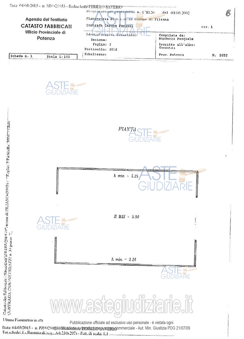 Vendita all'asta Senza incanto - LOTTO 2: Piena ed intera proprietà di un’unità immobiliare in Comune di Filiano (PZ), sita in C.da Casone Perazzi n. 34/Aidentificata nel NCEU al foglio 3, p.lla 3016 p.t., censita alla Cat. C/2 clas, 2 con consistenza di mq 96 e unasuperficie commerciale netta di mq 94,72, ivi compresa la corte e le pertinenze annesse. Prezzo base € 10.747,06 (offerta minima € 8.060,30). Data vendita 29/01/2026 ore 16:30. Professionista delegato alla vendita Avv. Piergiuseppe Metastasio - Email "avvmetastasio@gmail.com"; Cell. 3881564862; Tel. 0971289070. Custode Giudiziario Avv. Piergiuseppe Metastasio - Email "avvmetastasio@gmail.com"; Cell. 3881564862; Tel. 0971289070. Rif. Tribunale di Potenza - Esecuzione immobiliare post legge 80 n. 93/2013