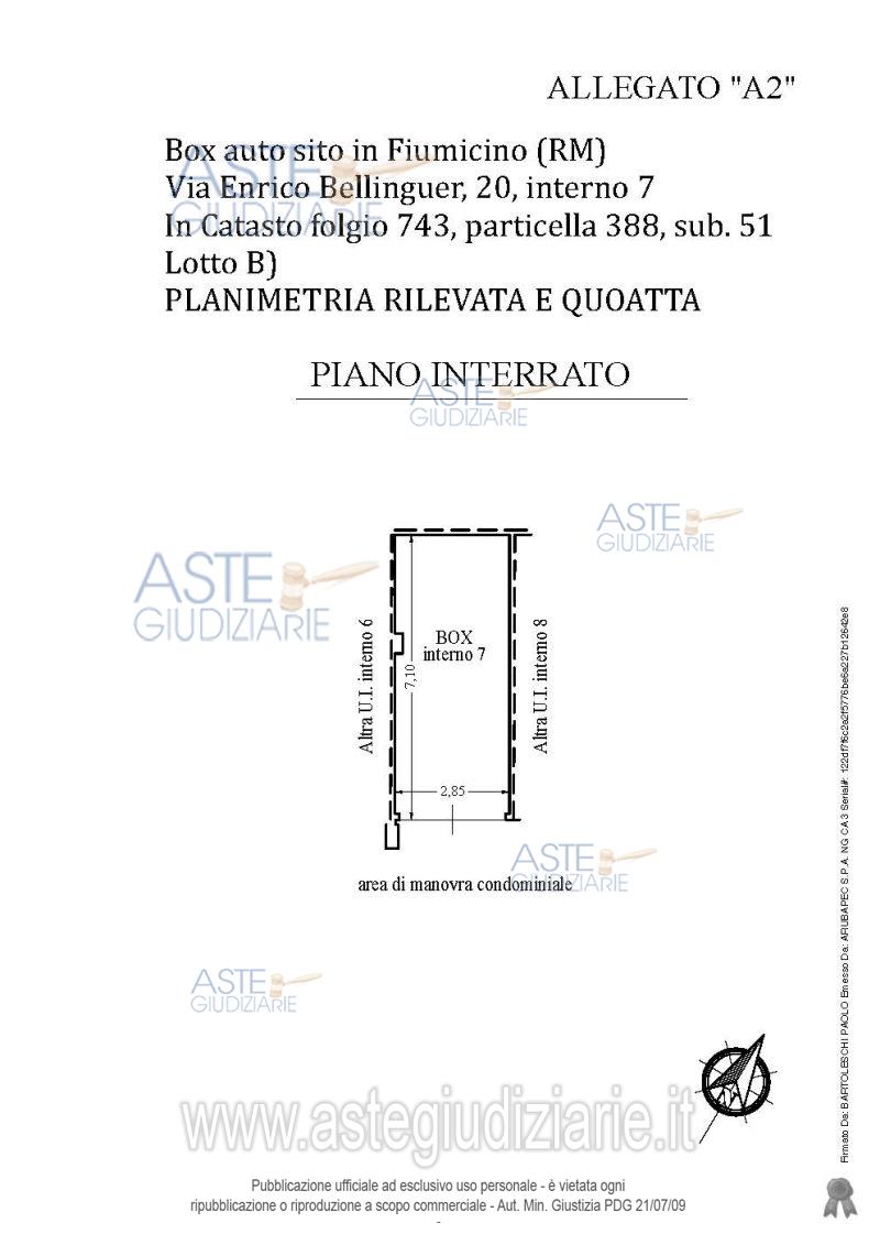 Vendita all'asta Senza incanto, con gara telematica asincrona - LOTTO 2: Box auto al piano interrato, int. 7, in palazzina condominiale denominata edificio C , sito in Fiumicino (RM), in Via Enrico Berlinguer n. 20. Censito all'Agenzia delle Entrate, Direzione Provinciale di Roma – Ufficio Territorio Servizi Catastali del Comune di Fiumicino al foglio 743, particella 388, sub. 51. Prezzo base € 28.000,00 (offerta minima € 21.000,00). Data inizio operazioni di vendita: 17/12/2025 ore 14:00. Professionista delegato alla vendita Avv. Matteo Mormino - Email "matteomormino@avvocaticivitavecchia.it"; Tel. 0766580671. Custode Giudiziario Avv. Matteo Mormino - Email "matteomormino@avvocaticivitavecchia.it"; Tel. 0766580671. Rif. Tribunale di Civitavecchia - Esecuzione immobiliare post legge 80 n. 145/2022