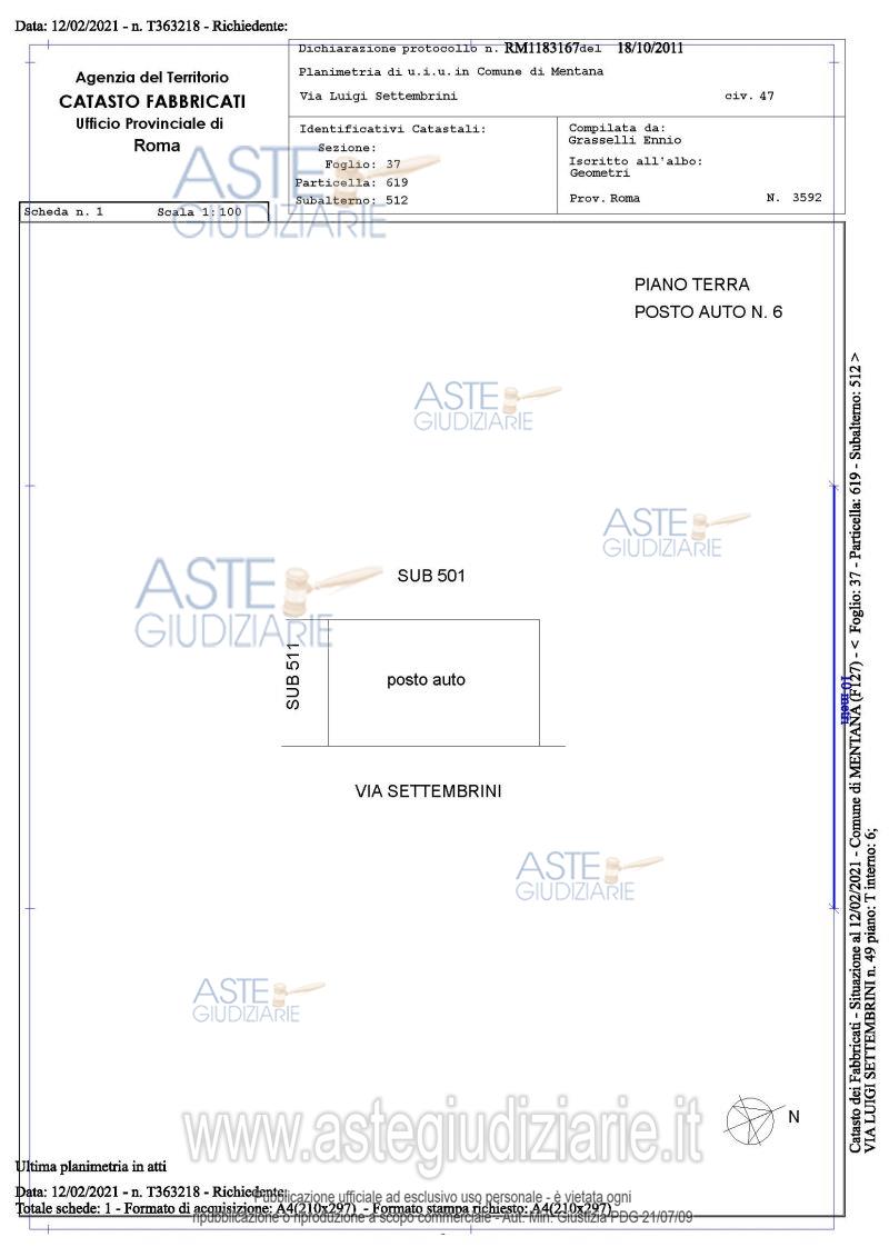 Vendita all'asta Senza incanto, con gara telematica asincrona - LOTTO 03: Posto auto, sito nel comune di Fonte Nuova via Luigi Settembrini 51, PT e distinto al Catasto fabbricati del Comune di Mentana al: foglio 37, part. 619, sub 511, cat. C/6, mq. 15, rendita 6,66;Posto auto, distinto al Catasto fabbricati del Comune di Mentana al: foglio 37, part. 619, sub 512, cat. C/6, mq. 94, rendita 6,66;Autorimessa distinto al Catasto fabbricati del Comune di Mentana al: foglio 37, part. 619, sub 516, cat. C/6, mq. 94, rendita 48,55. Prezzo base € 63.115,00 (offerta minima € 47.336,25). Data inizio operazioni di vendita: 11/03/2026 ore 16:00. Giudice Francesco Lupia. Professionista delegato alla vendita Avv. Laura Fioramanti - Email "avvlaurafioramanti@gmail.com"; Tel. 0774314226. Custode Giudiziario Ivg Di Roma Srl - Email "pvp@visiteivgroma.it"; Tel. 0689569801. Rif. Tribunale di Tivoli - Contenzioso civile n. 4267/2022