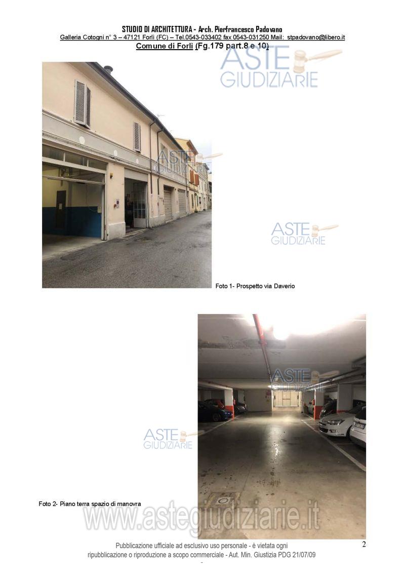 Vendita all'asta Senza incanto, con gara telematica asincrona - LOTTO 15: piena proprietà per l'intero di un posto auto scoperto, di 13 mq situato al piano secondo ubicato in comune di Forlì via Daverio 22, censito al Catasto Fabbricati di detto Comune al foglio 179 con la particella 10, sub. 84, graffato part. 8, sub. 105, cat. C/6; libero. Prezzo base € 6.050,00 (offerta minima € 4.537,50). Data inizio operazioni di vendita: 07/07/2026 ore 15:30. Giudice: Dott. Danilo Maffa.