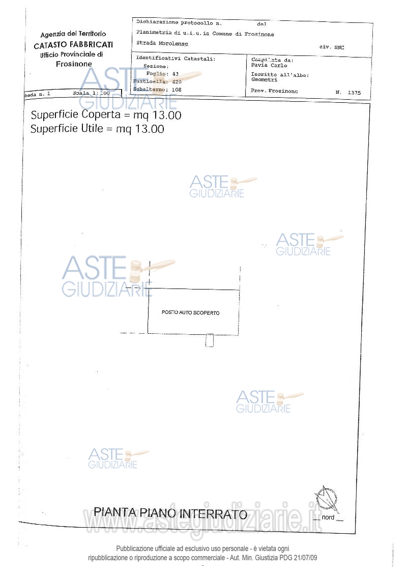 LOTTO 2: Парковочное место на подземном этаже, номер 7, внутри жилого комплекса "Ле Торри". Ultimo prezzo base € 2.894,00. Объявление аукциона по данной продаже будет вскоре опубликовано. Giudice Dott. Andrea Petteruti. Professionista delegato alla vendita Dott. Fabiola Luciani. Rif. Tribunale di Frosinone - Nuovo concordato preventivo n. 2/2012