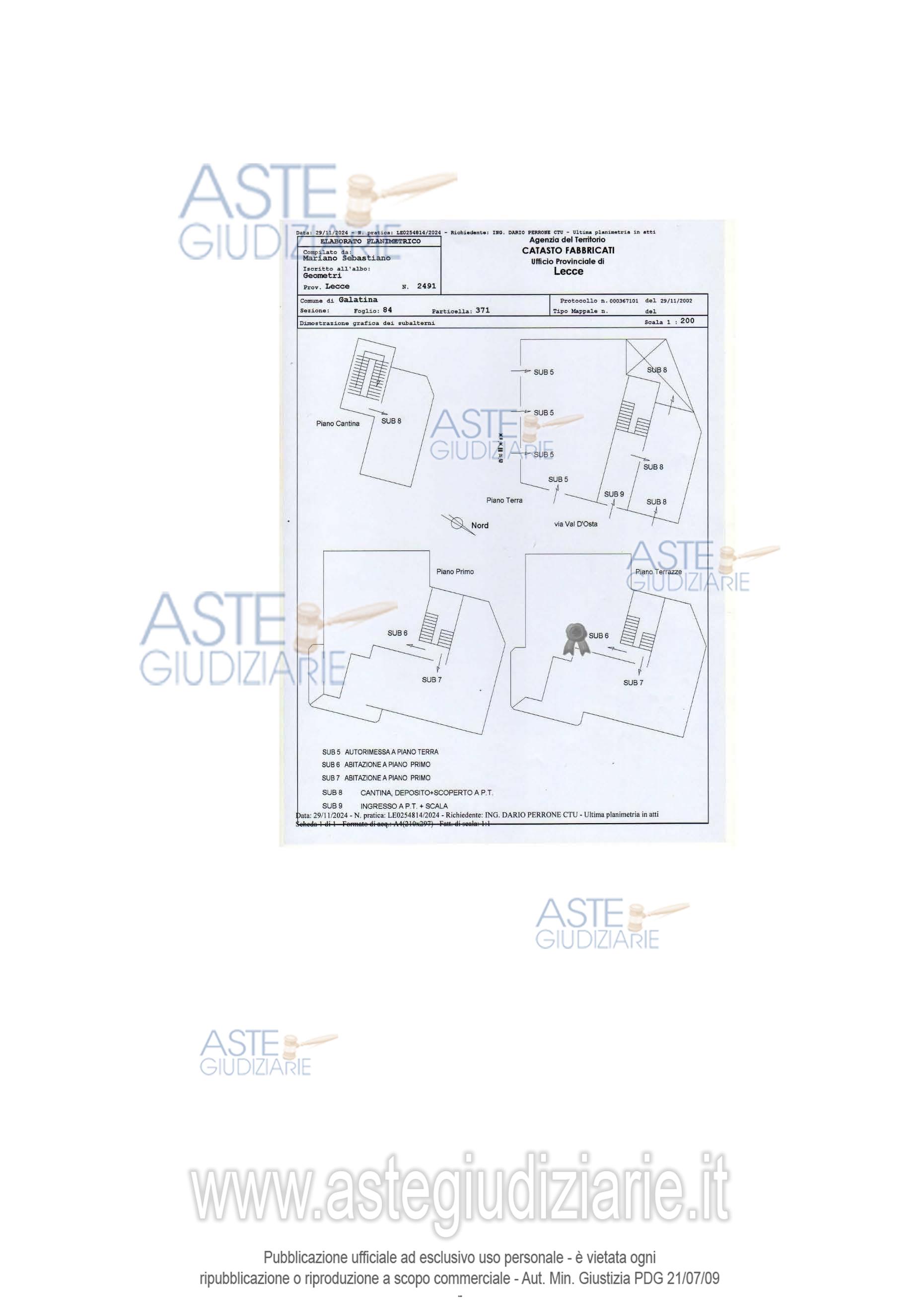 Vendita all'asta Senza incanto, con gara telematica asincrona - LOTTO UNICO: Piena proprietà 1000/1000 autorimessa con tre ingressi. Prezzo base € 33.450,00 (offerta minima € 25.100,00). Data inizio operazioni di vendita: 18/05/2026 ore 12:00. Professionista delegato alla vendita Avv. Ilaria Marzo - Email "info@avvocatoilariamarzo.it"; Cell. 3408033314; Tel. 0832243027. Custode Giudiziario Avv. Ilaria Marzo - Email "info@avvocatoilariamarzo.it"; Cell. 3408033314; Tel. 0832243027. Rif. Tribunale di Lecce - Espropriazione immobiliare (cartabia) n. 280/2024
