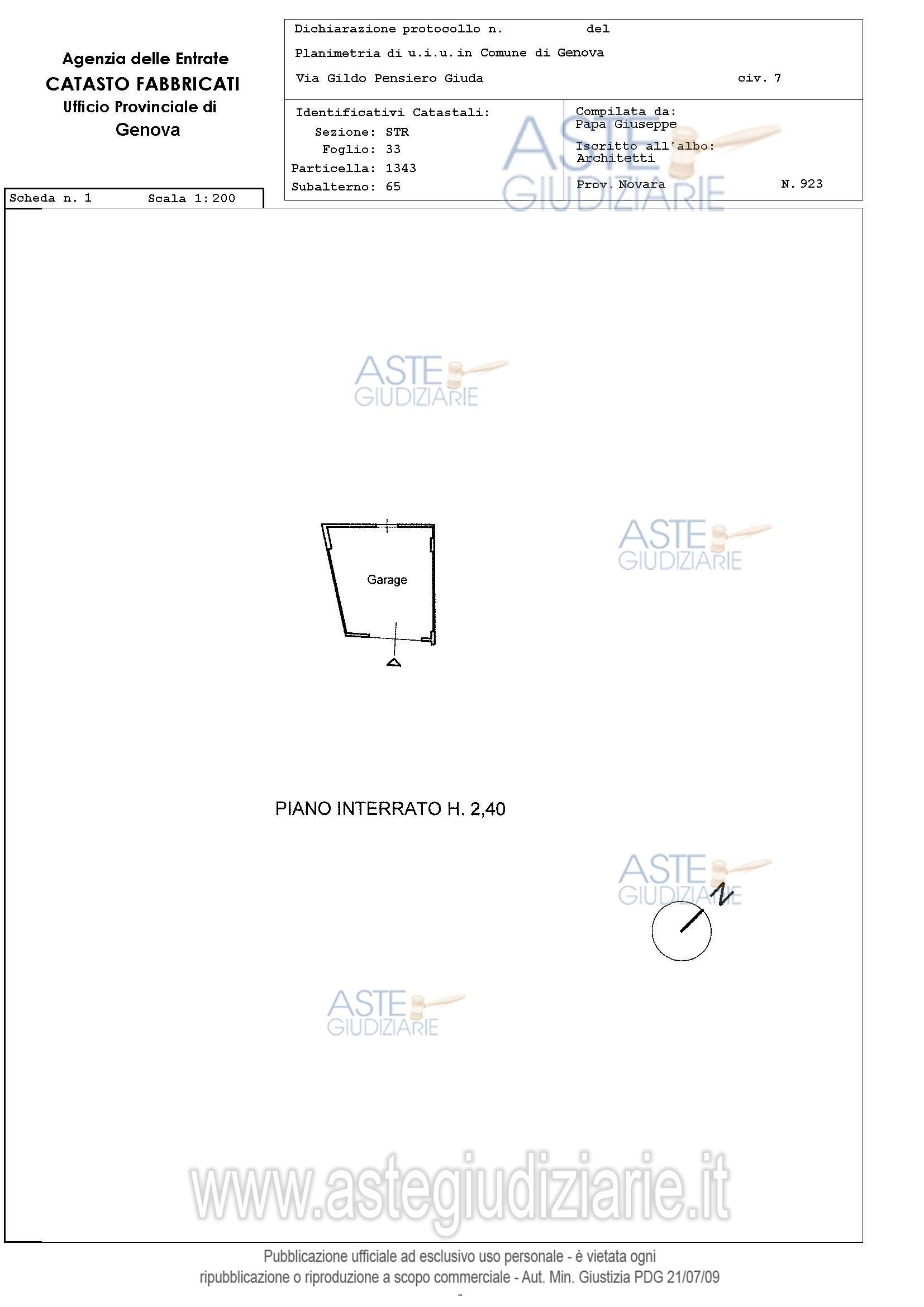 Garage o Posto auto Via Gildo Pensiero Giuda n. 7, 16100 Genova (GE)