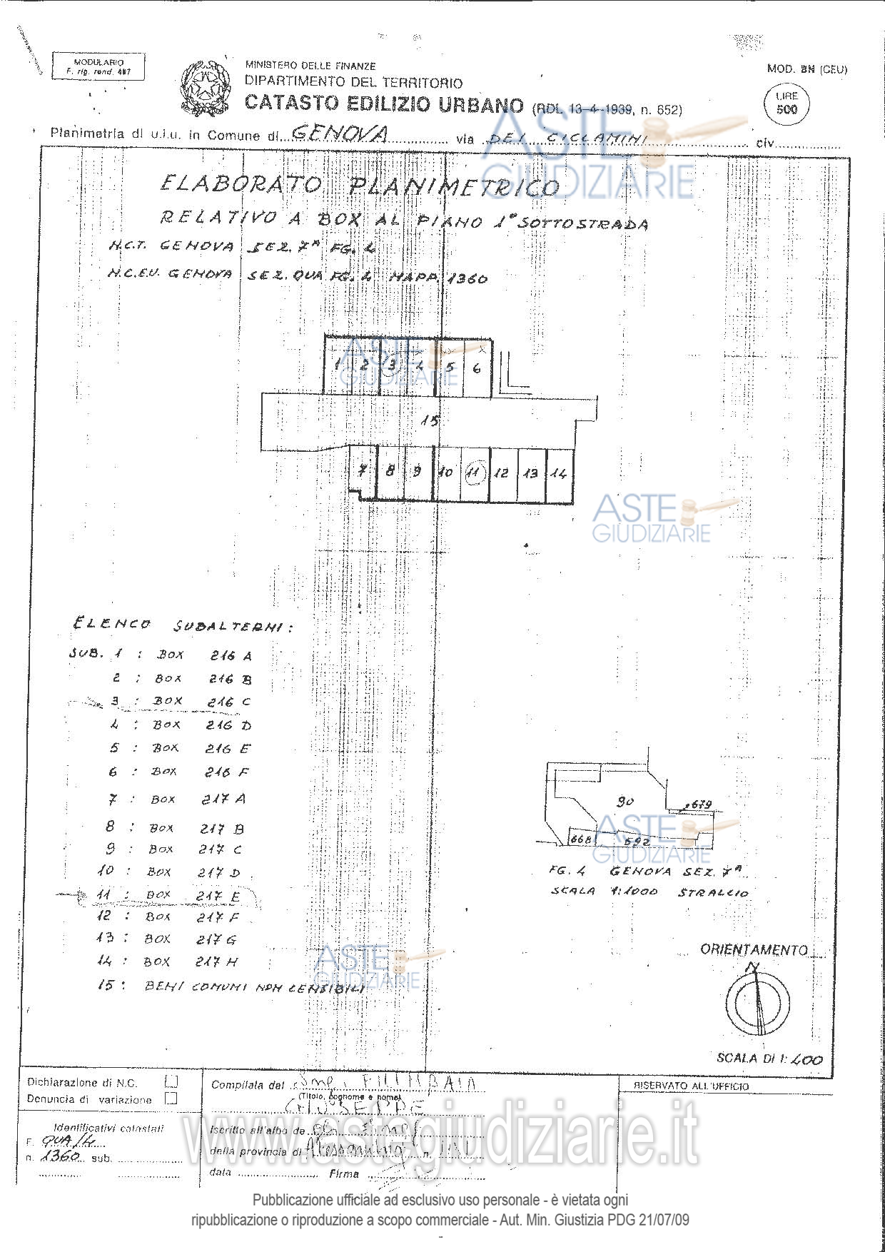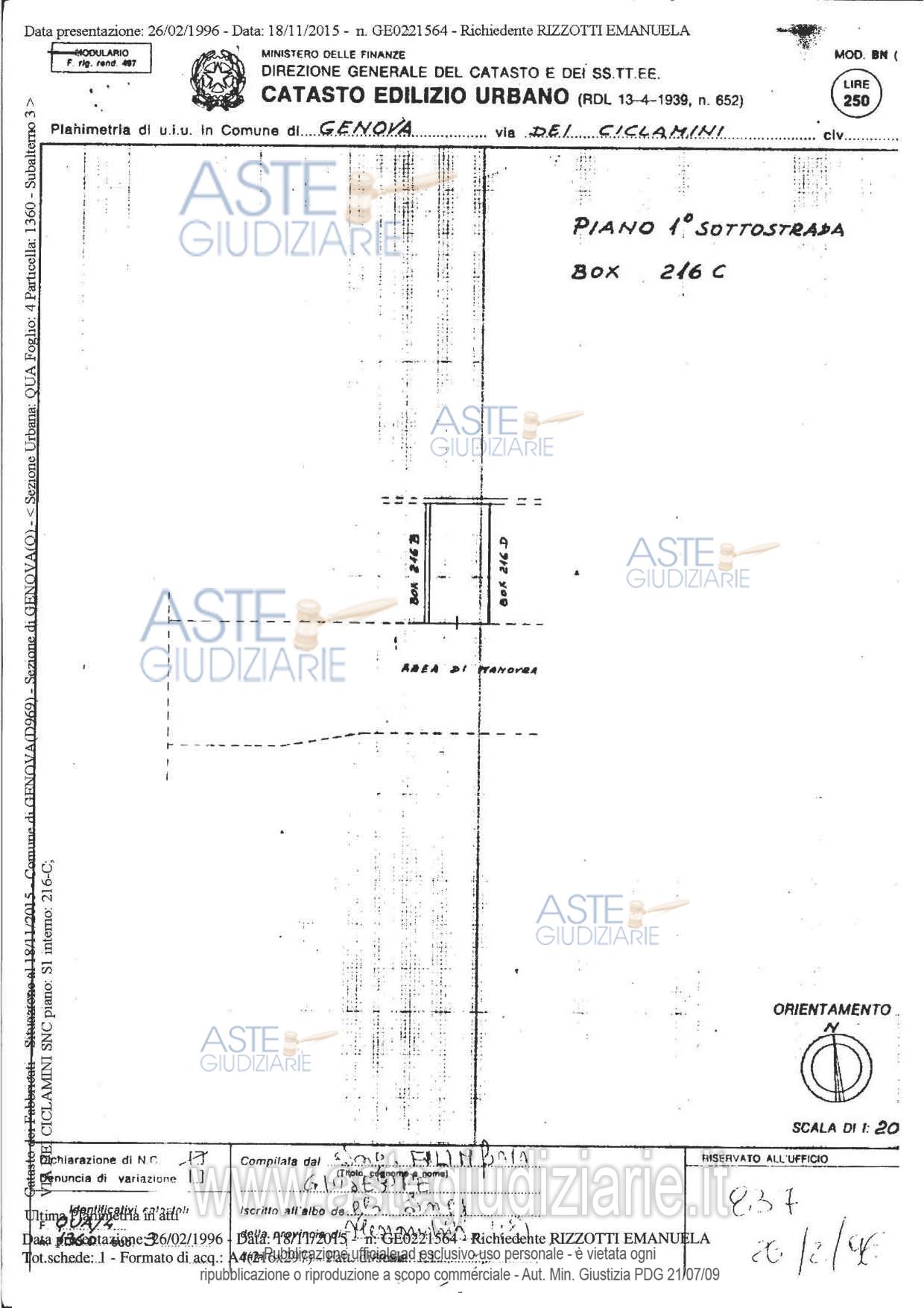 Vendita all'asta Senza incanto, con gara telematica sincrona - LOTTO 15: Per la piena ed intera proprietà: Box singolo ubicato a GENOVA in Via dei Ciclamini s.n.c, quartiere Quarto Alto, della superficie commerciale di 14,47 mq. Prezzo base € 10.317,00 (offerta minima € 10.317,00). Data vendita 26/03/2026 ore 12:00. Giudice Dott. Roberto Braccialini. Curatore Dott. Stefania Chiaruttini. Rif. Tribunale di Genova - Fallimentare (nuovo rito) n. 98/2015
