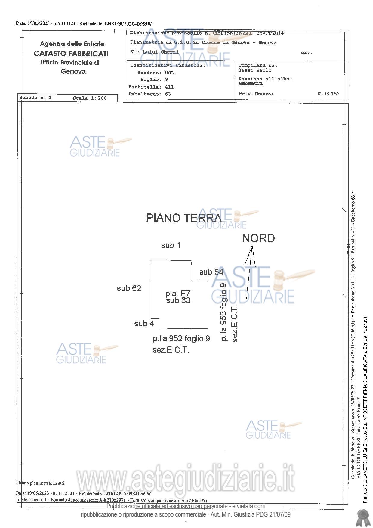 Vendita all'asta Senza incanto, con gara telematica sincrona mista - LOTTO 6: Avviso di vendita immobiliare - posto auto sito in Genova-Molassana, Via Luigi Gherzi. Prezzo base € 10.631,25 (offerta minima € 7.973,44). Data vendita 23/04/2026 ore 12:00. Professionista delegato alla vendita Dott. Stefano Gotta - Email "stefanofgotta@gmail.com"; Tel. 010581778. Custode Giudiziario Sovemo Srl - Email "visitegenova@sovemo.com"; Tel. 0105299253. Rif. Tribunale di Genova - Esecuzione immobiliare post legge 80 n. 307/2019
