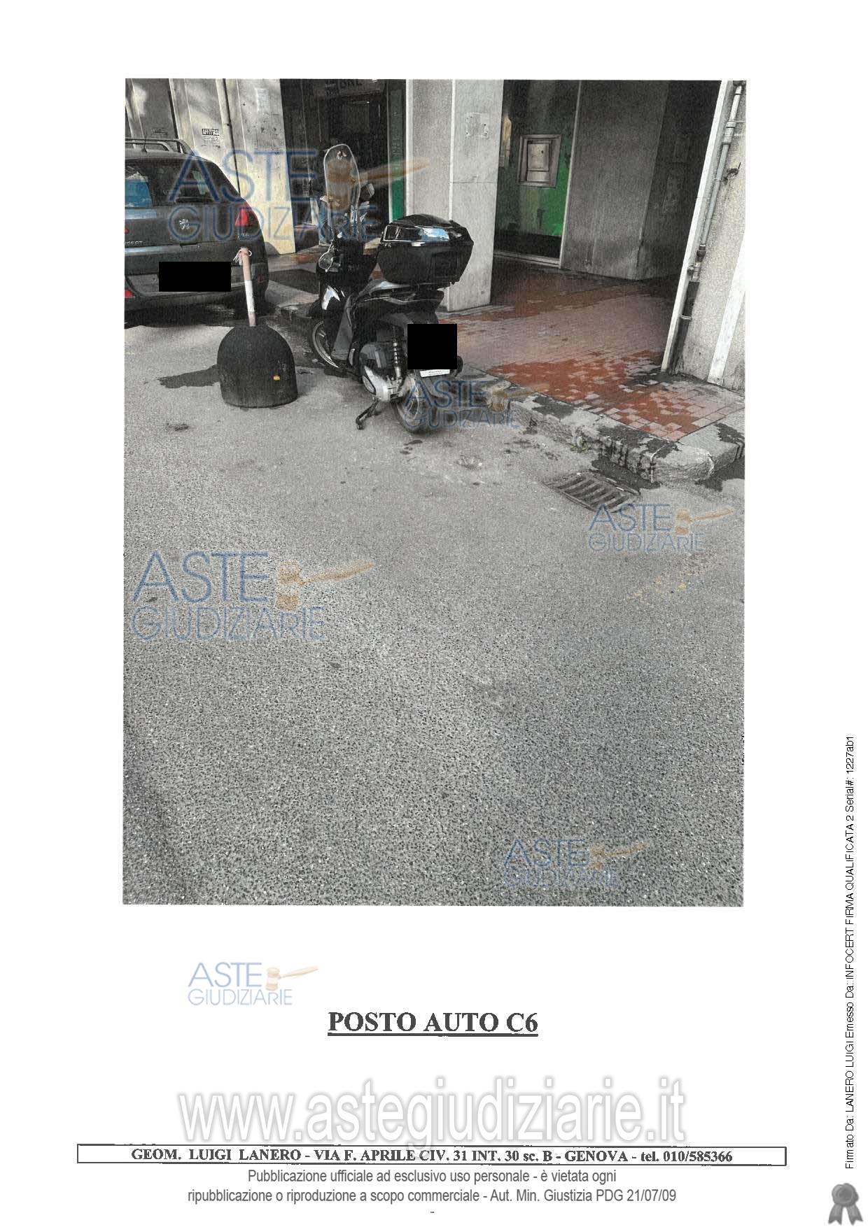 Vendita all'asta Senza incanto, con gara telematica sincrona mista - LOTTO 5: Avviso di vendita immobiliare - posto auto sito in Genova-Molassana, Via Luigi Gherzi. Prezzo base € 2.531,25 (offerta minima € 1.898,44). Data vendita 17/12/2025 ore 12:00. Professionista delegato alla vendita Dott. Stefano Gotta - Email "stefanofgotta@gmail.com"; Tel. 010581778. Custode Giudiziario Sovemo Srl - Email "visitegenova@sovemo.com"; Tel. 0105299253. Rif. Tribunale di Genova - Esecuzione immobiliare post legge 80 n. 307/2019