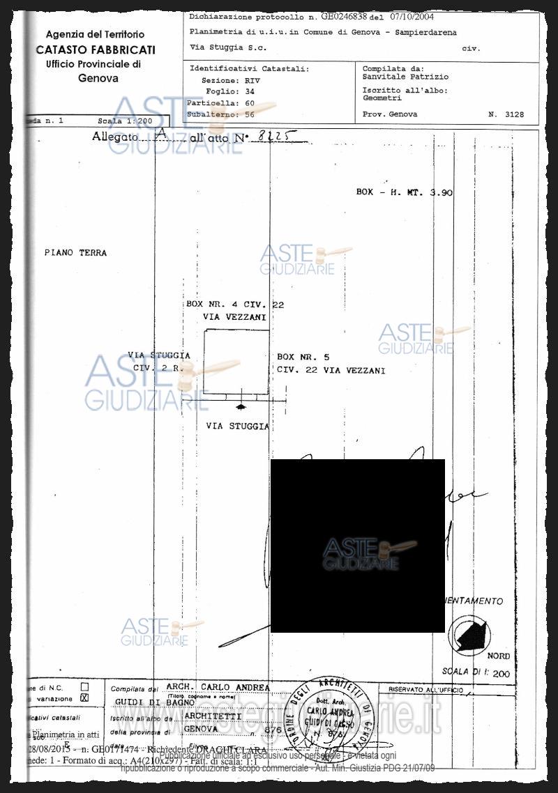 Vendita all'asta Senza incanto, con gara telematica sincrona mista - LOTTO 2: 100% DELLA PROPRIETA' DI IMMOBILE AD USO BOX. Prezzo base € 20.097,00 (offerta minima € 15.072,75). Data vendita 30/10/2025 ore 15:30. Curatore Rag. Clara Draghi - Email "info@studio-draghi.com"; Cell. 3299893155; Tel. 0185325062. Rif. Tribunale di Genova - Fallimentare (nuovo rito) n. 90/2014