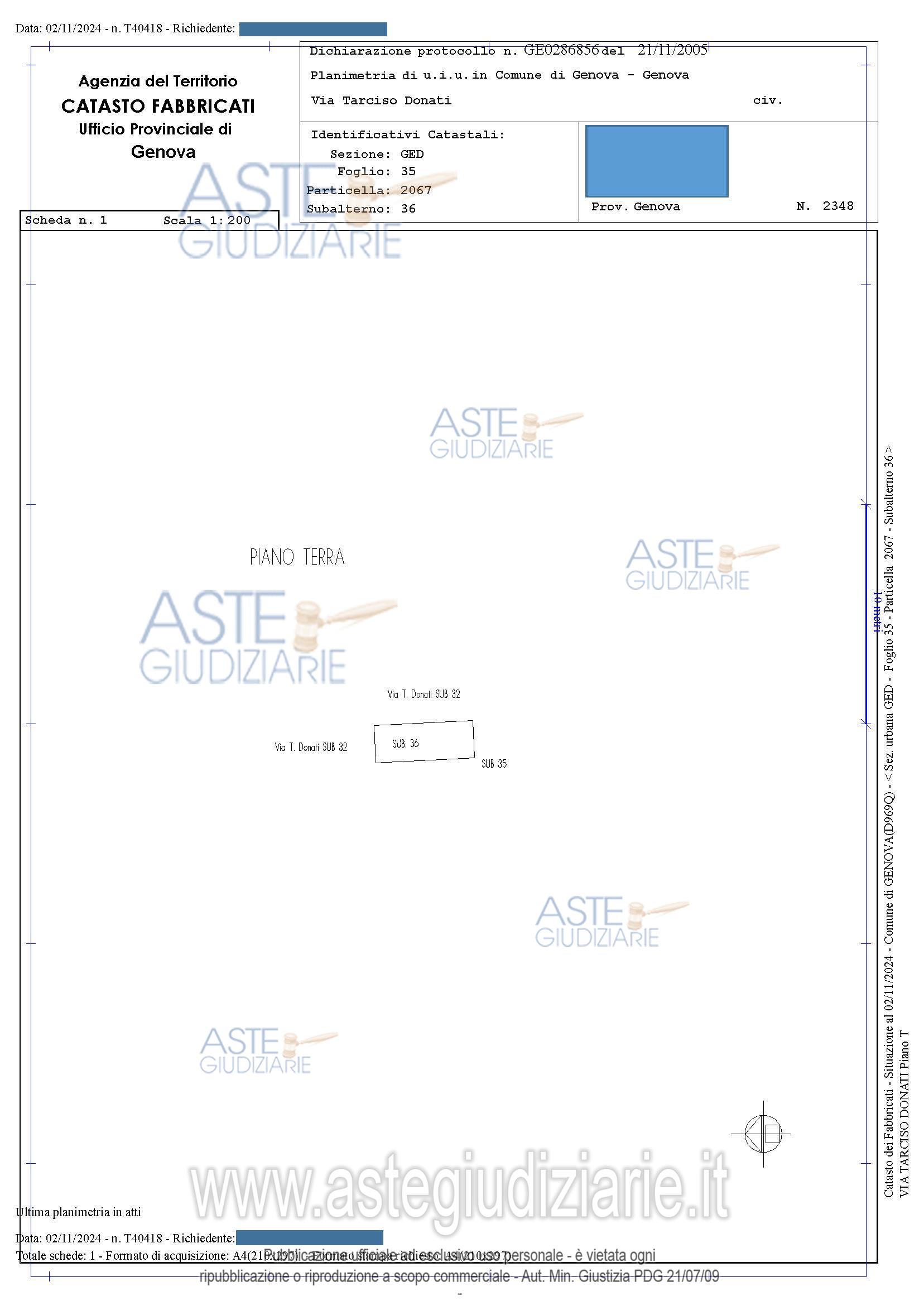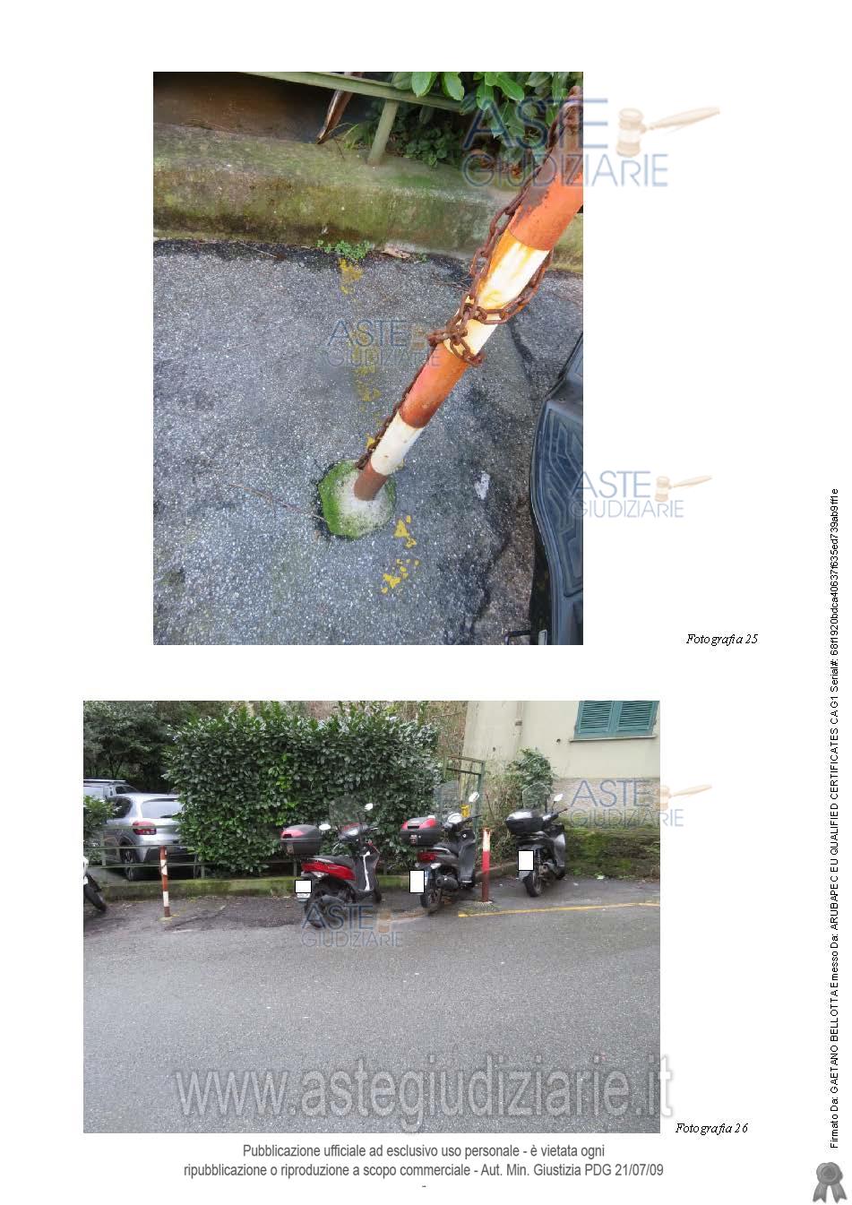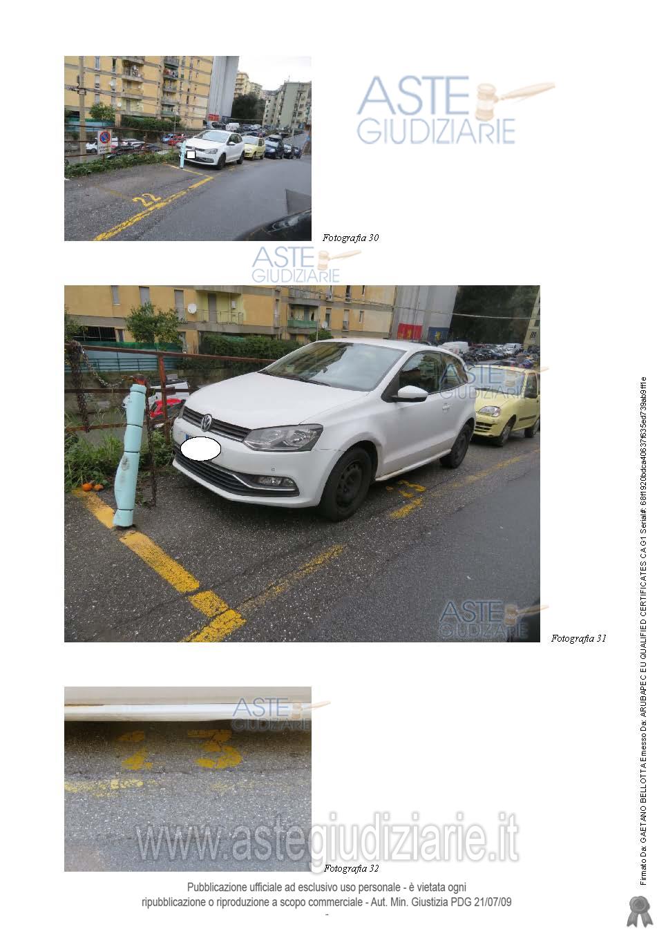 Vendita all'asta Senza incanto, con gara telematica sincrona mista - LOTTO 2: LOTTO DUE posto auto scoperto (sub. 36) sup. convenzionale mq 8.Per i Lotti 2, 3 e 4 si precisa che gli stessi non sono riservati esclusivamente ai residenti di Via Tarcisio Donati anche se la strada stessa risulta privata. Prezzo base € 3.656,00 (offerta minima € 2.741,75). Data vendita 27/05/2026 ore 14:00. Professionista delegato alla vendita Dott. Paola Di Gennaro - Tel. 0100925543. Custode Giudiziario Dott. Sovemo Srl - Email "visitegenova@sovemo.com". Rif. Tribunale di Genova - Espropriazione immobiliare (cartabia) n. 373/2024