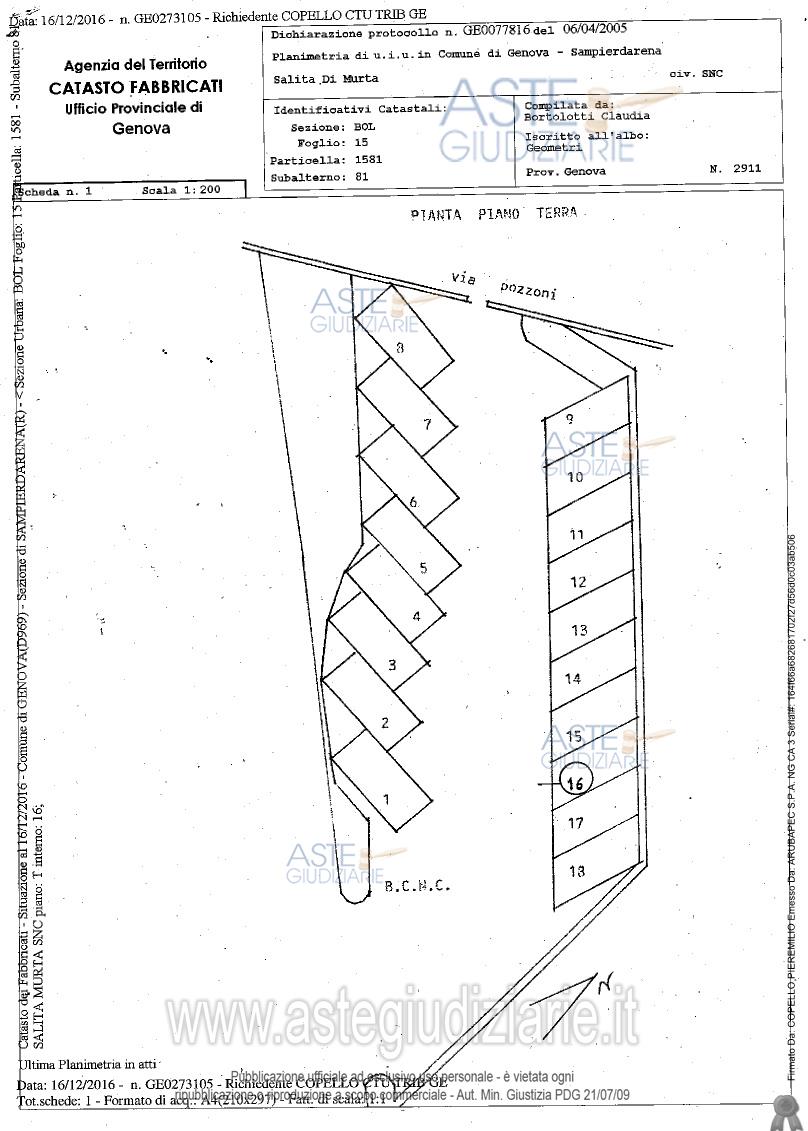 Vendita all'asta Senza incanto, con gara telematica sincrona mista - LOTTO 2: 100% DELLA PROPRIETA' DI N. 8 POSTI AUTO SCOPERTI VENDUTI IN BLOCCO. Prezzo base € 12.000,00 (offerta minima € 9.000,00). Data vendita 25/03/2026 ore 16:15. Curatore Dott. Domenico Sardano - Email "domenico.sardano@studiosardano.it"; Cell. 3407885745; Tel. 010561669. Rif. Tribunale di Genova - Fallimentare (nuovo rito) n. 46/2016