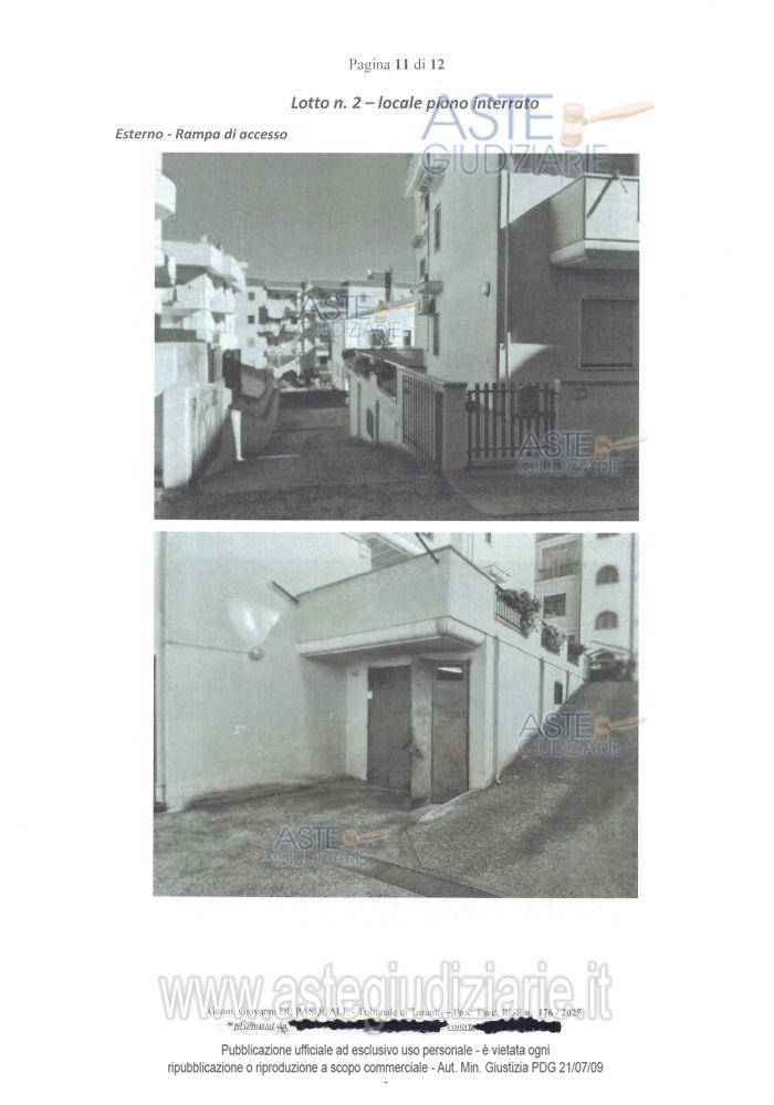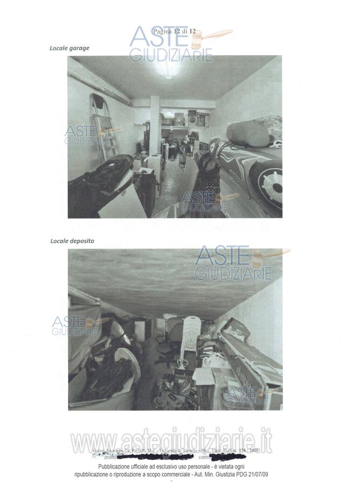 Vendita all'asta Senza incanto, con gara telematica asincrona - LOTTO 2: Locale garage con annesso deposito composto da due ambienti, situato al piano interrato. Prezzo base € 37.100,00 (offerta minima € 27.825,00). Data inizio operazioni di vendita: 12/05/2026 ore 17:30. Giudice Dott. Andrea Paiano. Professionista delegato alla vendita Avv. Vito Paolo Capozza. Custode Giudiziario Avv. Vito Paolo Capozza - Email "capozzastudio@gmail.com". Rif. Tribunale di Taranto - Espropriazione immobiliare (cartabia) n. 176/2025