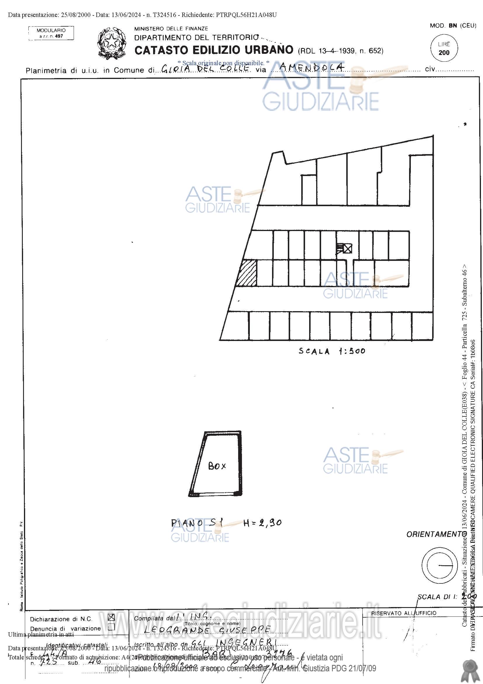 Vendita in attesa dell'emissione del nuovo bando d'asta. LOTTO 2: Box auto censito in Catasto Urbano, foglio 44, particella 725, sub. 46, cat. C/6, sito in Via Giovanni Amendola, Gioia del Colle (BA). Il locale è posto al piano interrato di un edificio condominiale posto tra le Vie Giulio Pastore – Angolo Via Amendola, con accesso da Via Giulio Pastore senza civico; risulta composto da un solo vano. Ultimo prezzo base € 11.335,60 (offerta minima € 8.501,70). Giudice Dott. Marina Cavallo. Professionista delegato alla vendita Avv. Dorotea D'amico - Email "dorisdamico@gmail.com"; Cell. 3393074528; Tel. 3393074528. Custode Giudiziario Avv. Dorotea D'amico - Email "dorisdamico@gmail.com"; Cell. 3393074528; Tel. 3393074528. Rif. Tribunale di Bari - Espropriazione immobiliare (cartabia) n. 331/2023