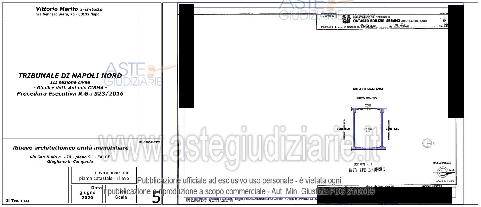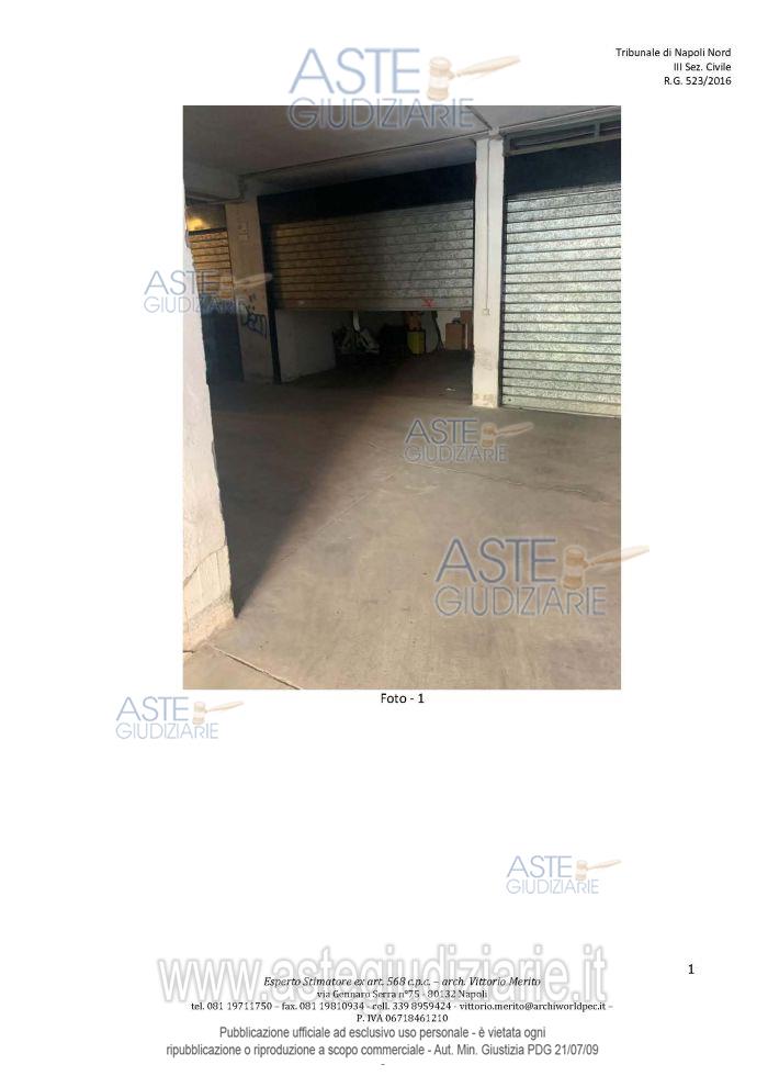 Vendita all'asta Senza incanto, con gara telematica asincrona - LOTTO 15: Piena ed esclusiva proprietà di box auto ubicato in Giugliano in Campania (NA) alla via San Nullo n. 179, piano S1, edificio B-E - Parco Country Park; composto da un unico ambiente, riportato al Catasto Fabbricati del Comune di Giugliano in Campania al F. 89, p.lla 295, sub. 420, cat. C/6, cl. 1, consistenza 23 mq, sup. cat. 25 mq, rendita € 53,45. Prezzo base € 11.165,63 (offerta minima € 8.374,22). Data inizio operazioni di vendita: 10/03/2026 ore 15:00. Professionista delegato alla vendita Avv. Marco D'arcangelo - Email "marcodarca1974@gmail.com"; Tel. 0810491814. Custode Giudiziario Avv. Marco D'arcangelo - Email "marcodarca1974@gmail.com"; Tel. 0810491814. Rif. Tribunale di Napoli Nord - Esecuzione immobiliare post legge 80 n. 523/2016