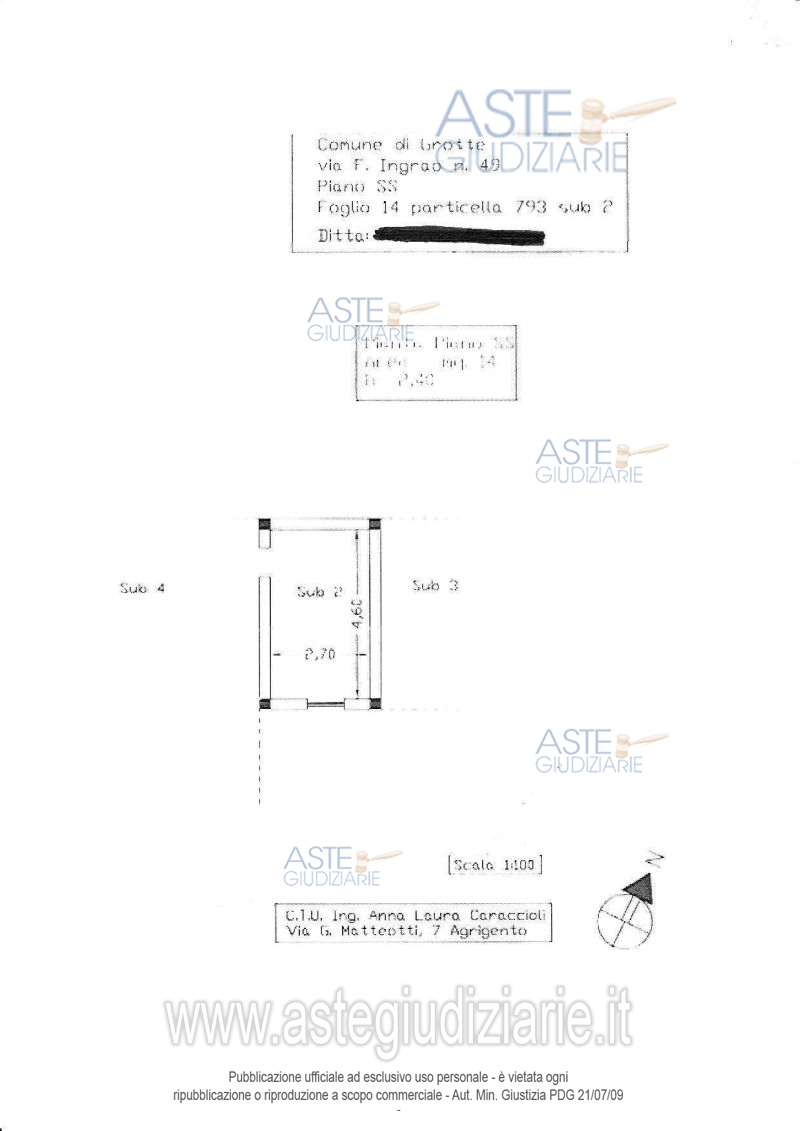 Vendita in attesa dell'emissione del nuovo bando d'asta. LOTTO 3: Piena proprietà per la quota di 1000/1000 di autorimessa sottostante al piano terra. Ultimo prezzo base € 10.757,81 (offerta minima € 8.068,36). Giudice Dott. Domenica Spano. Professionista delegato alla vendita Avv. Flavia Di Rosa - Email "flaviadirosa@libero.it". Custode Giudiziario Avv. Flavia Di Rosa - Email "flaviadirosa@libero.it". Rif. Tribunale di Agrigento - Esecuzione immobiliare post legge 80 n. 228/2013