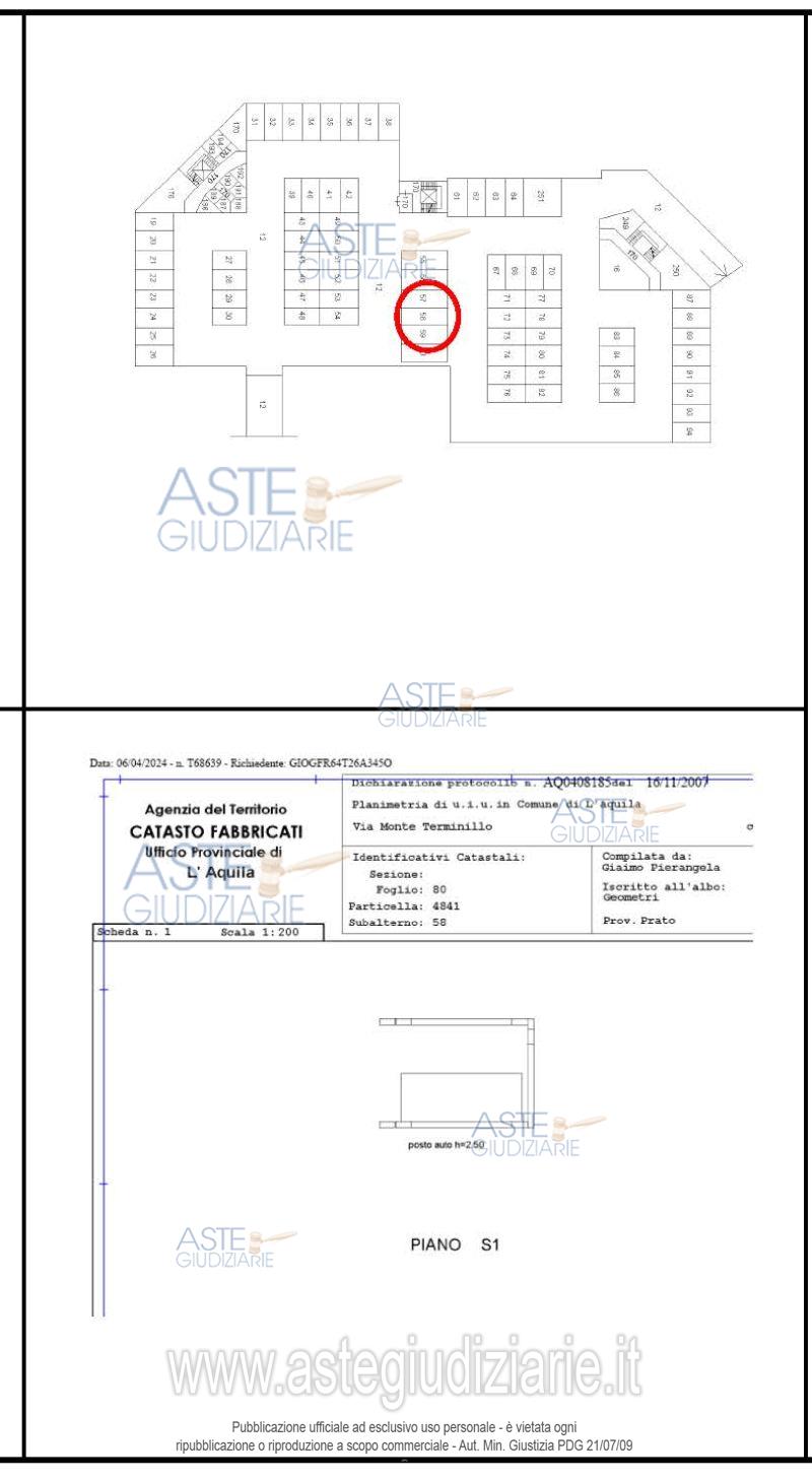 Vendita all'asta Senza incanto, con gara telematica asincrona - LOTTO 26: Posto auto coperto posto al livello -1 di un edificio costituito da cinque livelli fuori terra (oltre un sottotetto) e due interrati. Prezzo base € 9.000,00 (offerta minima € 7.200,00). Data inizio operazioni di vendita: 23/06/2026 ore 09:00. Giudice Dott. Gabriele Quaranta. Professionista delegato alla vendita Avv. Fabrizio Fiore - Email "fabrizio.fiore22@virgilio.it"; Cell. 3402734421. Custode Giudiziario Istituto Vendite Giudiziarie Abruzzo - Email "ivgavezzano@gmail.com"; Tel. 08631940168. Rif. Tribunale di L'Aquila - Esecuzione immobiliare post legge 80 n. 6/2023