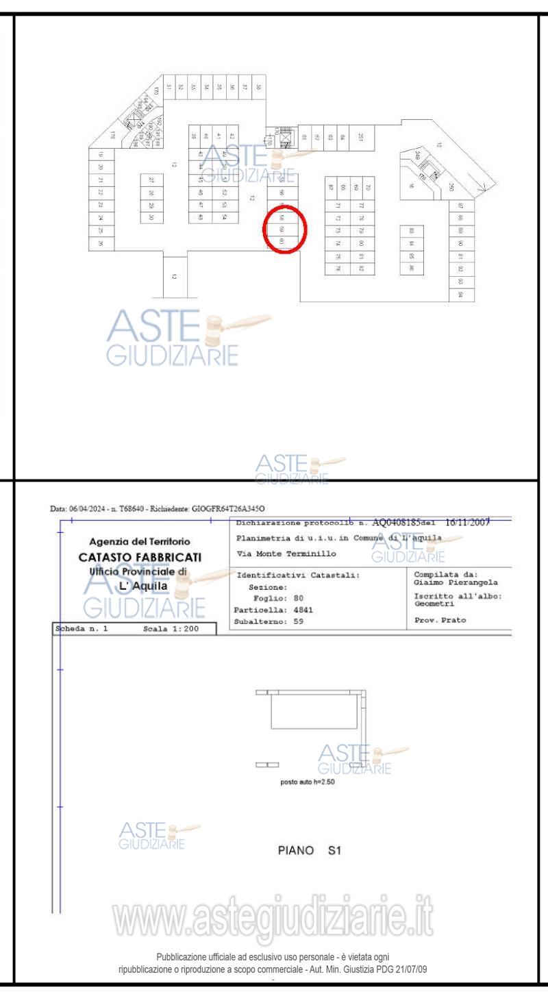 Vendita all'asta Senza incanto, con gara telematica asincrona - LOTTO 27: Posto auto coperto posto al livello -1 di un edificio costituito da cinque livelli fuori terra (oltre un sottotetto) e due interrati. Prezzo base € 9.000,00 (offerta minima € 7.200,00). Data inizio operazioni di vendita: 23/06/2026 ore 09:00. Giudice Dott. Gabriele Quaranta. Professionista delegato alla vendita Avv. Fabrizio Fiore - Email "fabrizio.fiore22@virgilio.it"; Cell. 3402734421. Custode Giudiziario Istituto Vendite Giudiziarie Abruzzo - Email "ivgavezzano@gmail.com"; Tel. 08631940168. Rif. Tribunale di L'Aquila - Esecuzione immobiliare post legge 80 n. 6/2023