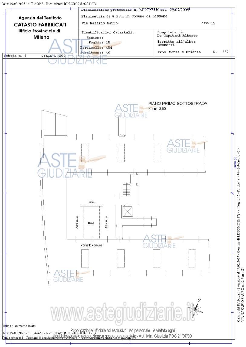 Vendita all'asta Senza incanto, con gara telematica sincrona - LOTTO 3: BOX SINGOLO 1000/1000 di piena proprietà sito in LISSONE via Nazario Sauro n.14 della superficie commerciale di 14,00 mq posto al piano interrato. Prezzo base € 13.500,00 (offerta minima € 10.100,00). Data vendita 24/06/2026 ore 15:30. Professionista delegato alla vendita: Rag. Marco Colombo - Email "proc.esecutive@studiolegalcom.it"; Tel. 0362/245574.