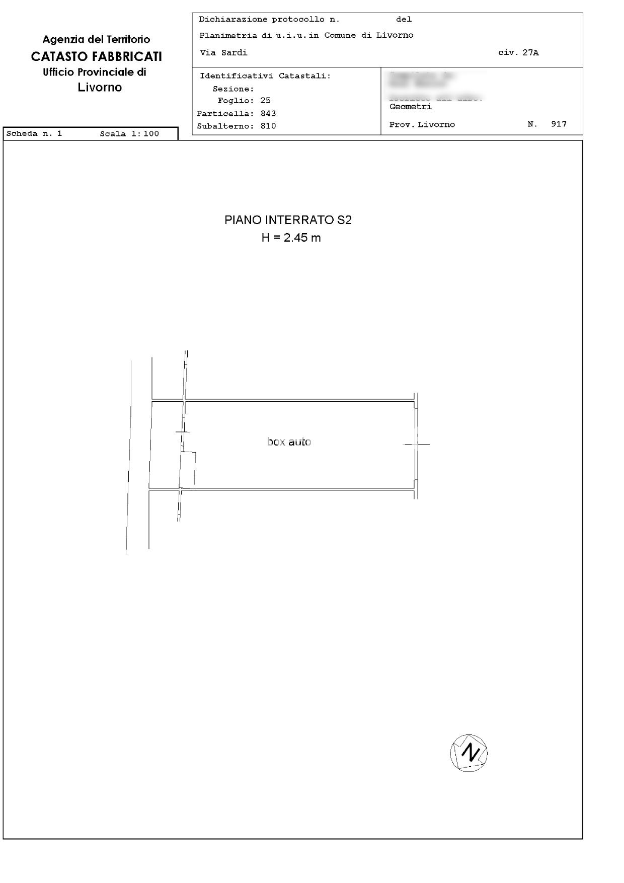 Garage al piano seminterrato secondo di 25 metri quadri.