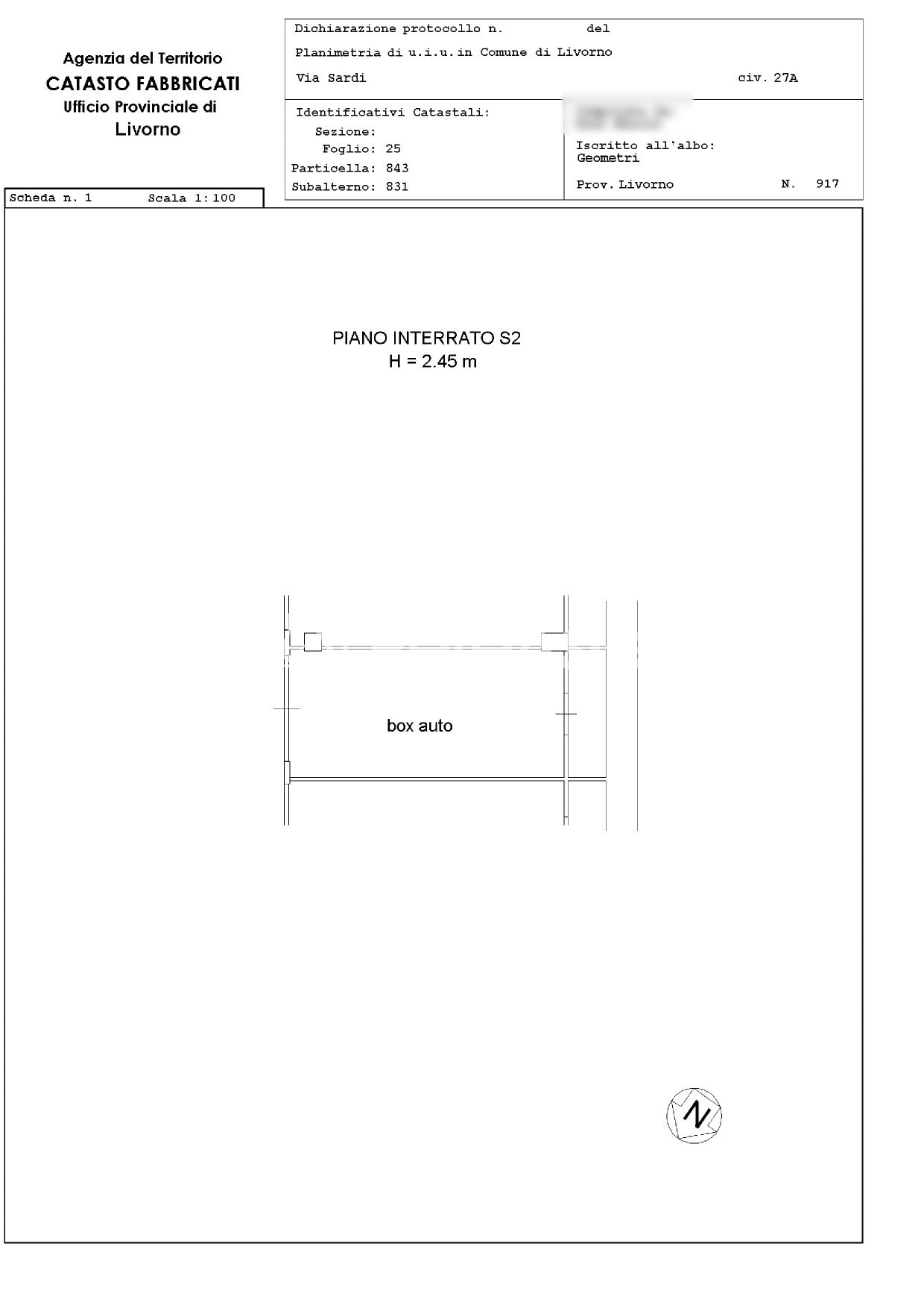 Basement garage of 20 square meters on the second floor. The winning bidder will be required to pay urbanization fees in favor of the Municipality of Livorno, estimated at 1,494.33 euros by the municipality and specified in the individual sales sheets (it is recommended to obtain an official calculation from the relevant authority). As provided for in the agreement dated 15/07/2013 between the Municipality of Livorno and Spil, these urbanization fees will not be due in case the garage is located at a distance of 500 meters from another property owned by the same bidder and is related to the needs of that property, in which case a pertinence hypothesis is met. The Seller may also certify the construction costs incurred to allow the winning bidder to apply for any possible deduction, if the legal requirements are met. Easements: The connection road of the property to the public road is burdened by a right of way in favor of neighboring private real estate units.